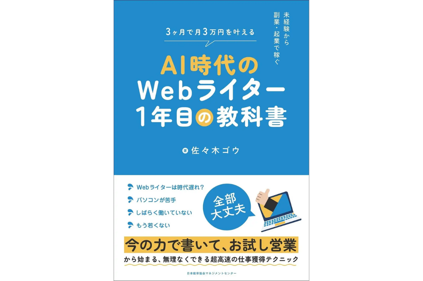 Sales Promotion DX CompanyのPXC株式会社(本社:東京都台東区、代表取締役社長:菅野健一)は、当社取締役・佐々木ゴウ著者の書籍『AI時代のWebライター1年目の教科書』が、5月23日に発売されたことをお知らせいたします。