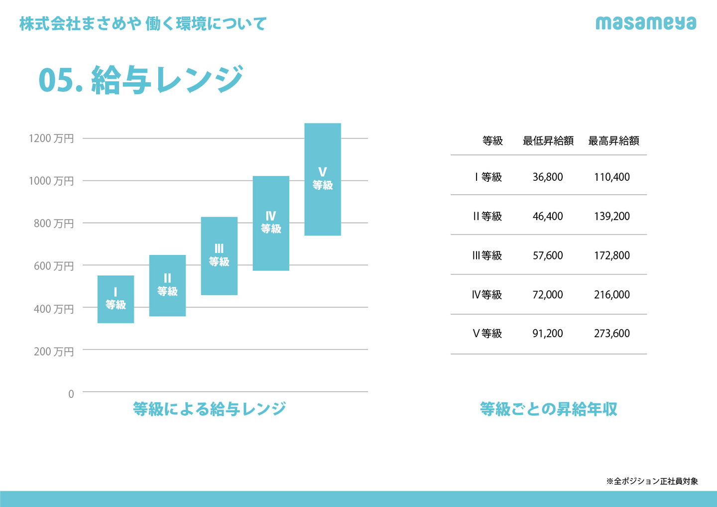 1年に1回の評価により、実績に応じて等級が変化します。等級が上がることで、昇給となる場合があります。