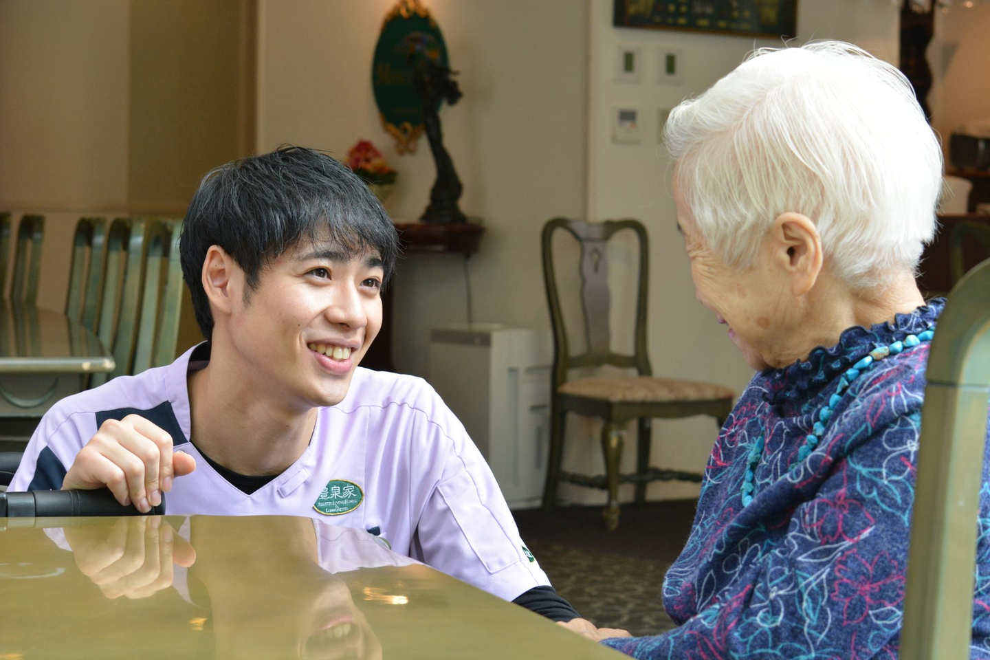 自分の祖父母を大切に思う気持ちと同じ気持ちでご利用者に接することができる人がいいですね。一番の醍醐味は、ご利用者との対話。人生の先輩からの話は、学びがあるし楽しいですよ!私自身、優しく教えてくれるご利用者のおかげで続けてこられました。素敵な人が多い現場でもあり、人との関わりで成長していく素敵な場所ですよ。