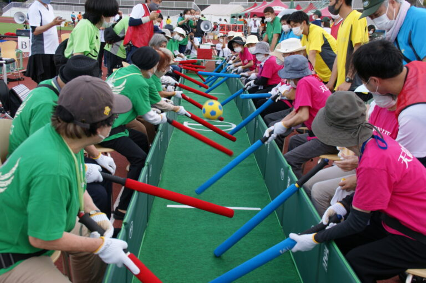 そして、豊泉家スポーツフェスタの目玉競技は「棒サッカー」。こちらは、各施設のご利用者ごとのチーム対抗です。施設ごとの絆を発揮しながら、大いに盛り上がる時間となりました!