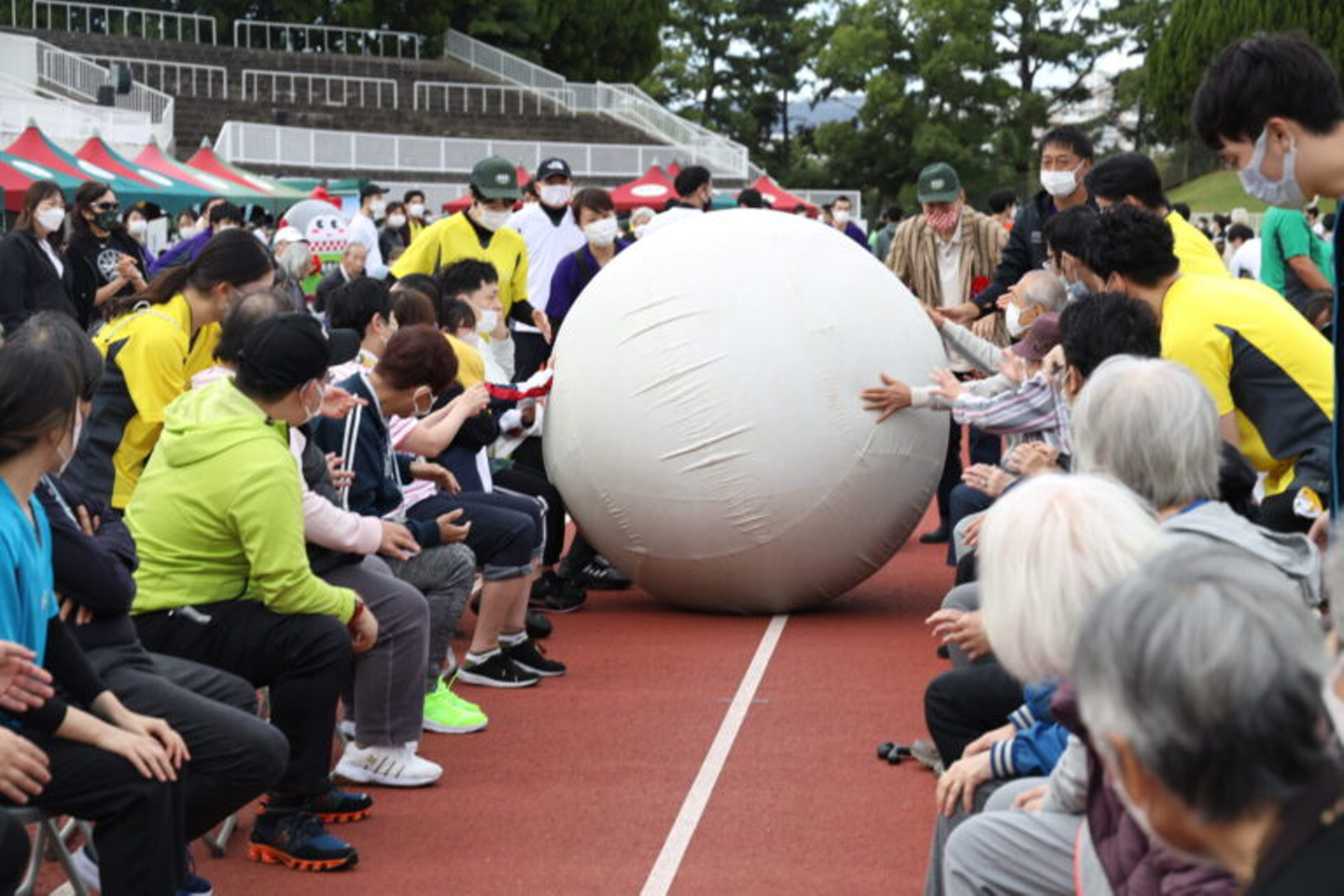 服部緑地公園内の競技場で開催されたスポーツフェスタ。フェローとご利用者、そして「ステークホルダー」として取引企業様にもご参加いただいている、豊泉家の大イベントです。涼しく過ごしやすい天候の中、全員で一緒に汗を流す1日になりました。