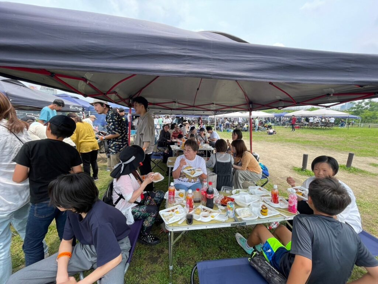淀川河川敷で行われたバーベキュー。フェローとフェローの家族、総勢77名が参加する大イベントになりました。休日の午前中、ラフな雰囲気で皆さんが集まりました。