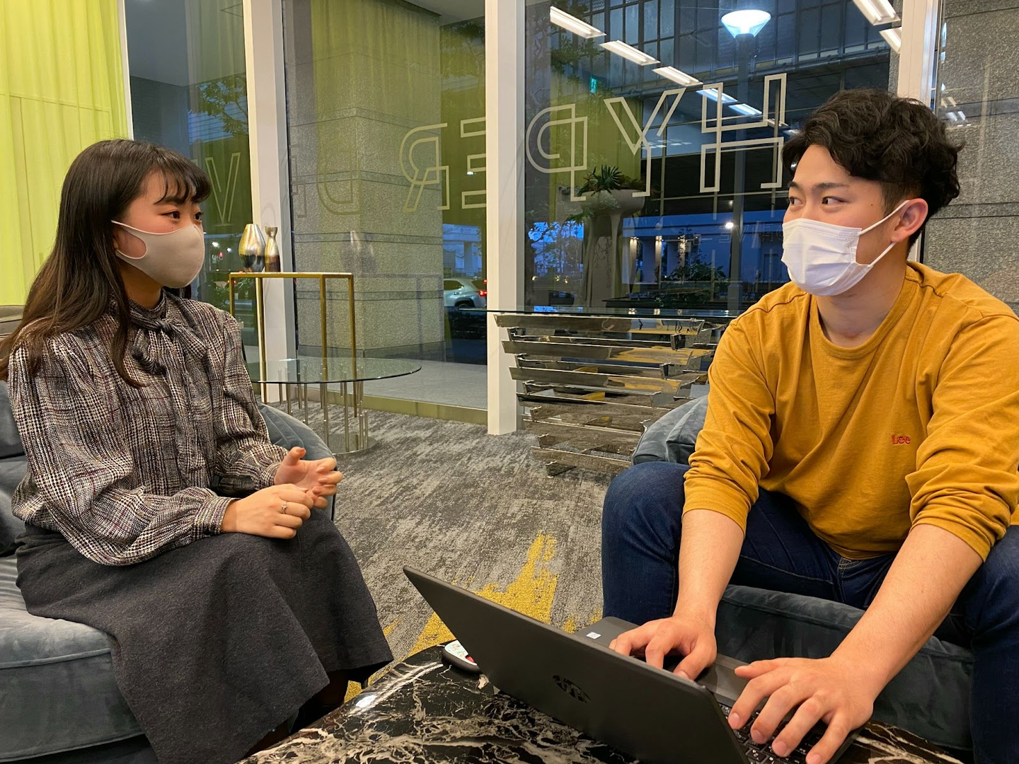 「発信する言葉の選び方や表現の方法などのトレーニングや、会社について知らないことを勉強する良い機会にもなるから、どんなに時間をかけても丁寧に記事を作ること。それから画面の先にいる学生のみなさんにファンになってもらえるように真心を込めて伝えること、その2つをとにかく意識しなさい」先輩にはそのように言われスタートしました。