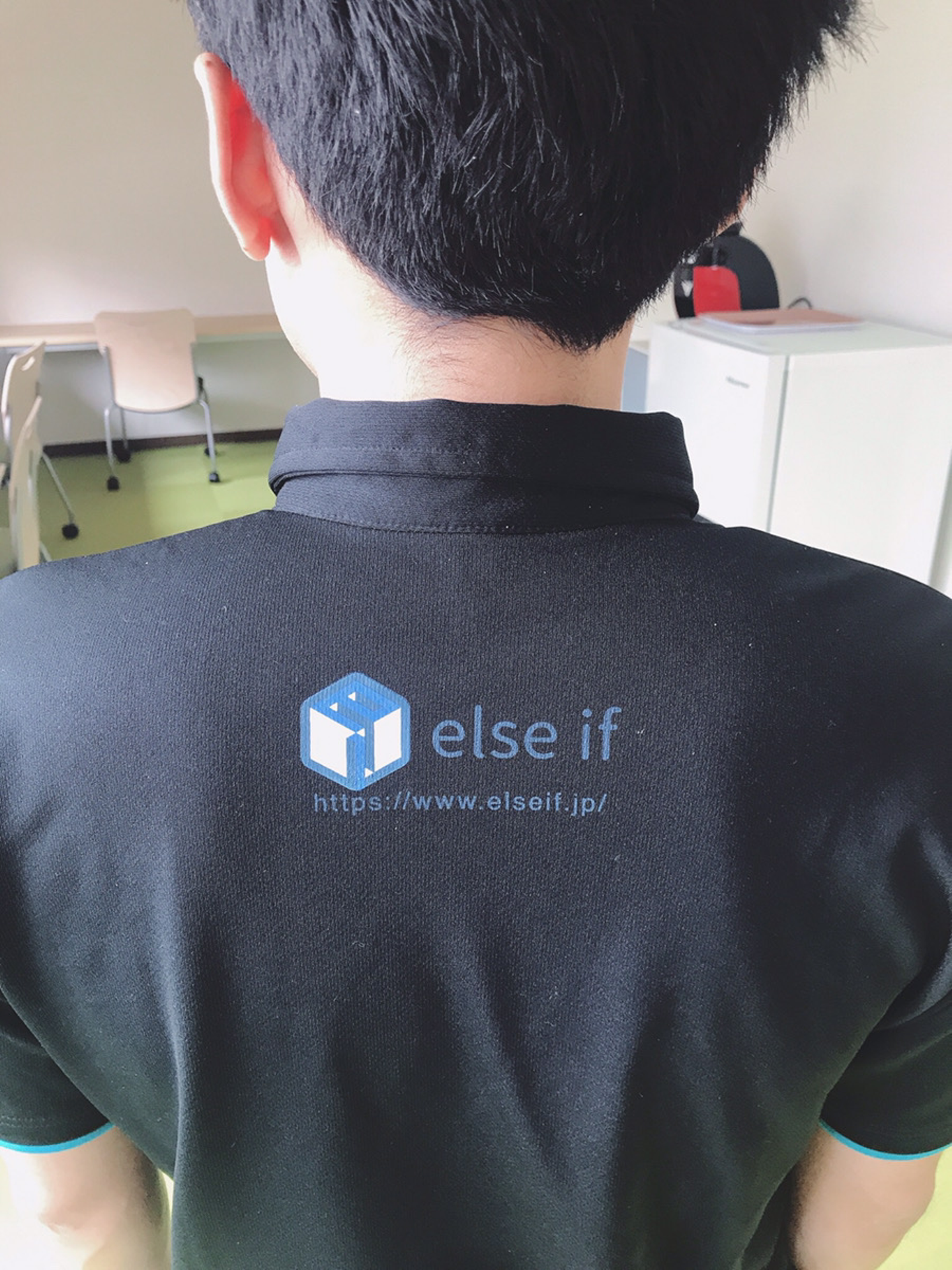 今日はたまたま会社からもらったポロシャツにて出勤していました。