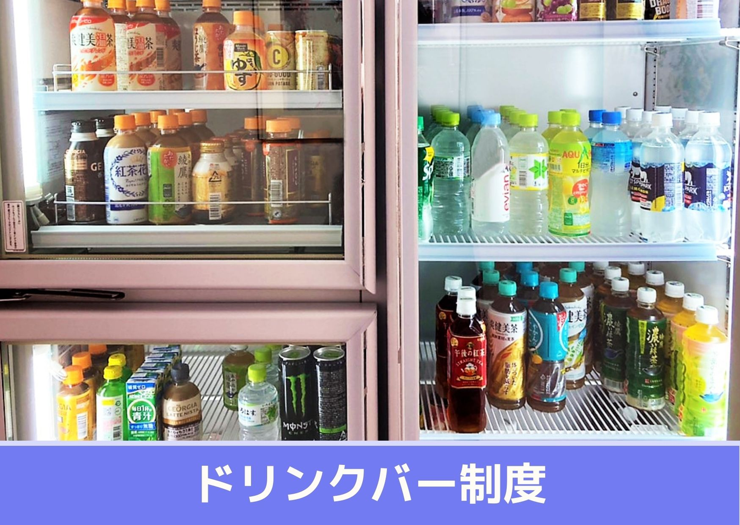 エーピーテックにはドリンクバーという名の冷蔵庫があり、そこに入っているドリンクなら何でも1本50円で飲めます。