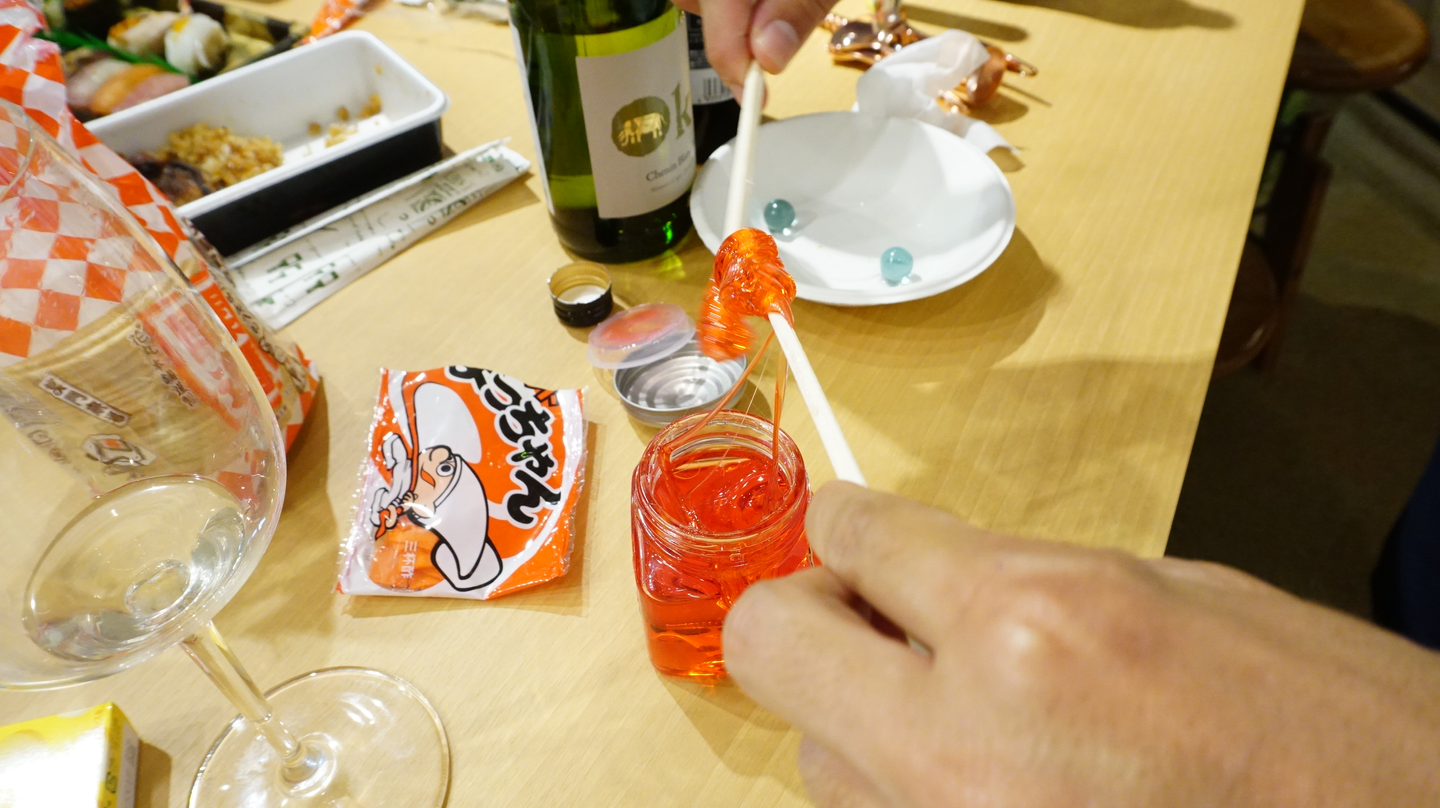 こねり飴。 駄菓子の一つで、色のついた水あめです。