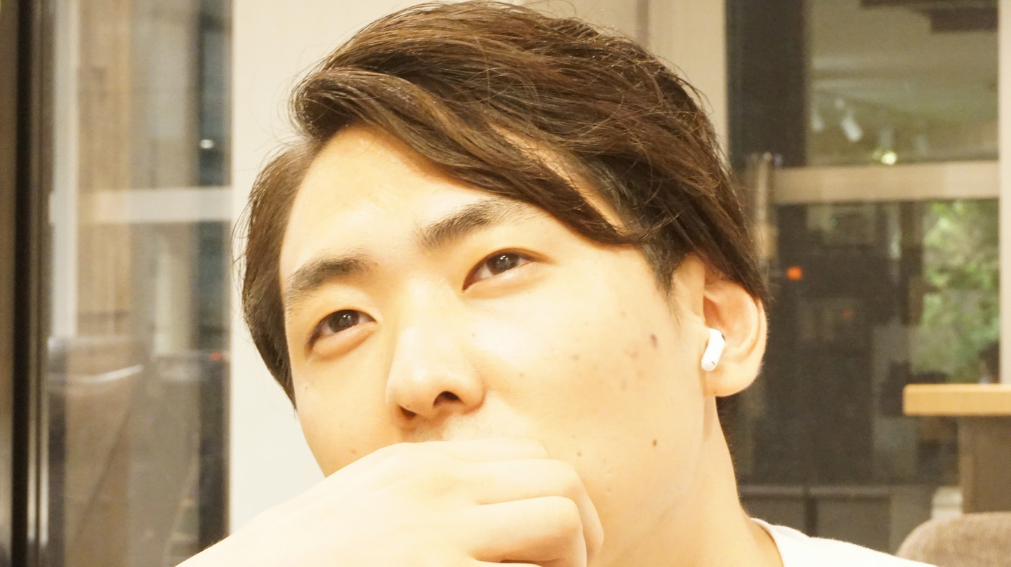 カフェスペースの巨大スクリーンを使いながら、商品企画の西村さんと会議をしていた梶原くん。