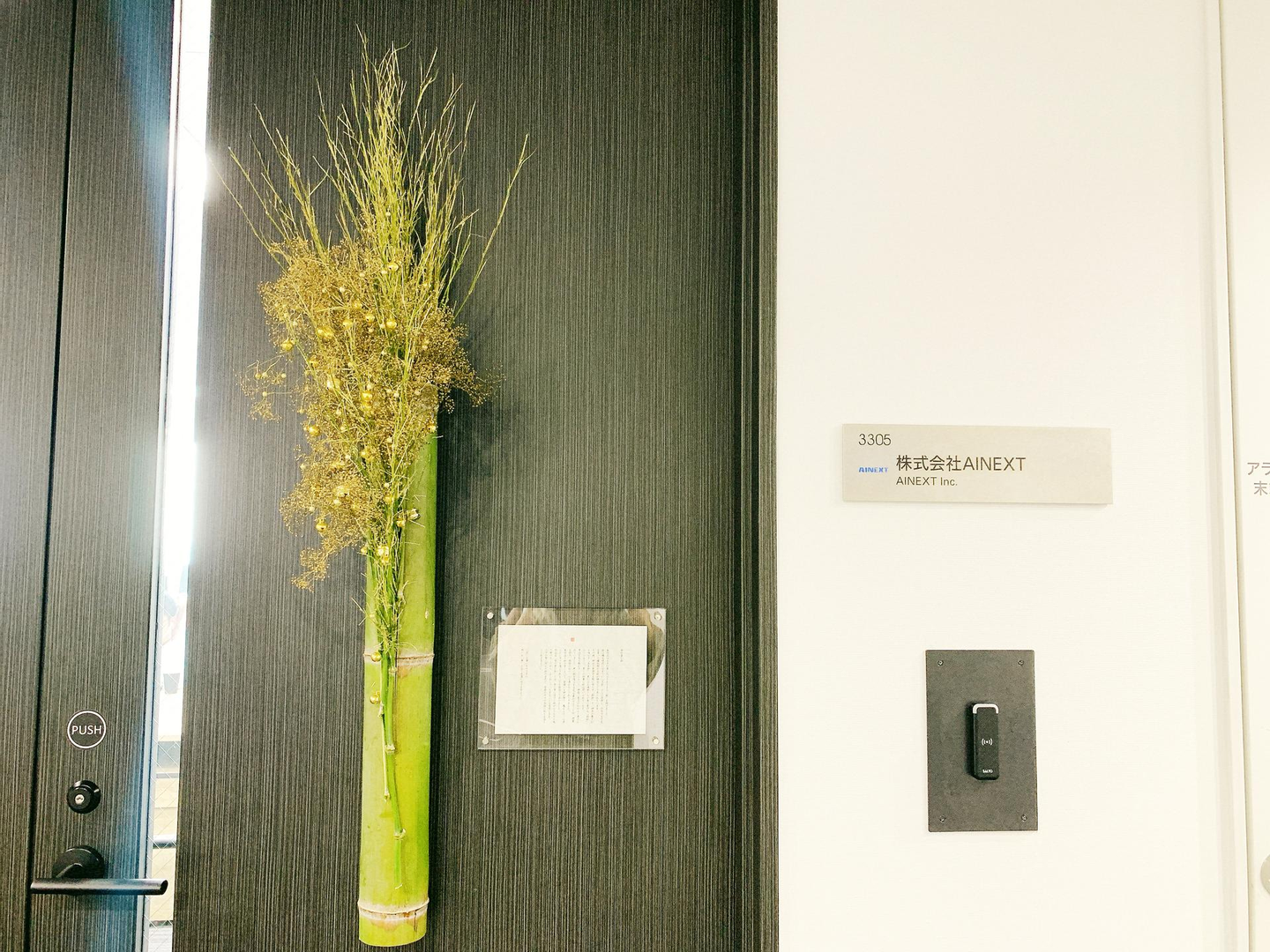 AINEXTでは、定期的に華道家さんからオフィスへお花を届けていただき、入口に飾らせていただいています。