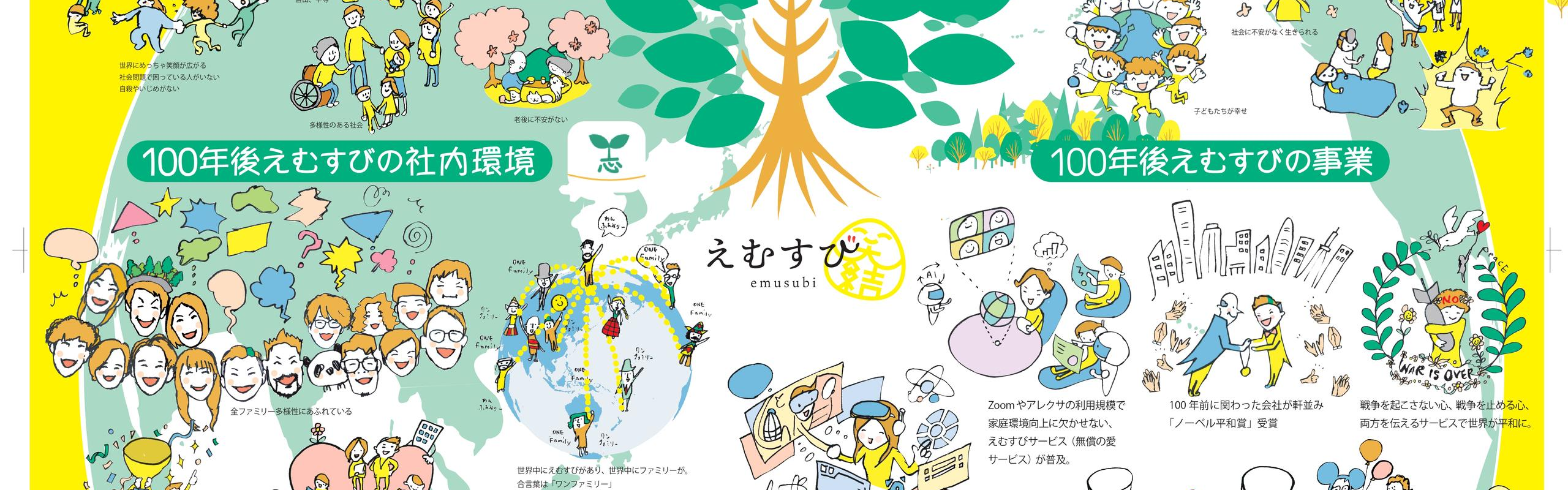 生きがい、やりがいに満ちている人の人生は笑顔で溢れています。 人だけではなく、植物も動物もすべての生命が笑顔になれます。 世の中は支配から、紛争、環境問題、人権侵害が起こっています。 誰にも支配されず、全生命で育み合う未来。 今よりも、もっともっと笑顔が溢れている未来。 えむすびが目指し、必ず実現させる未来です。