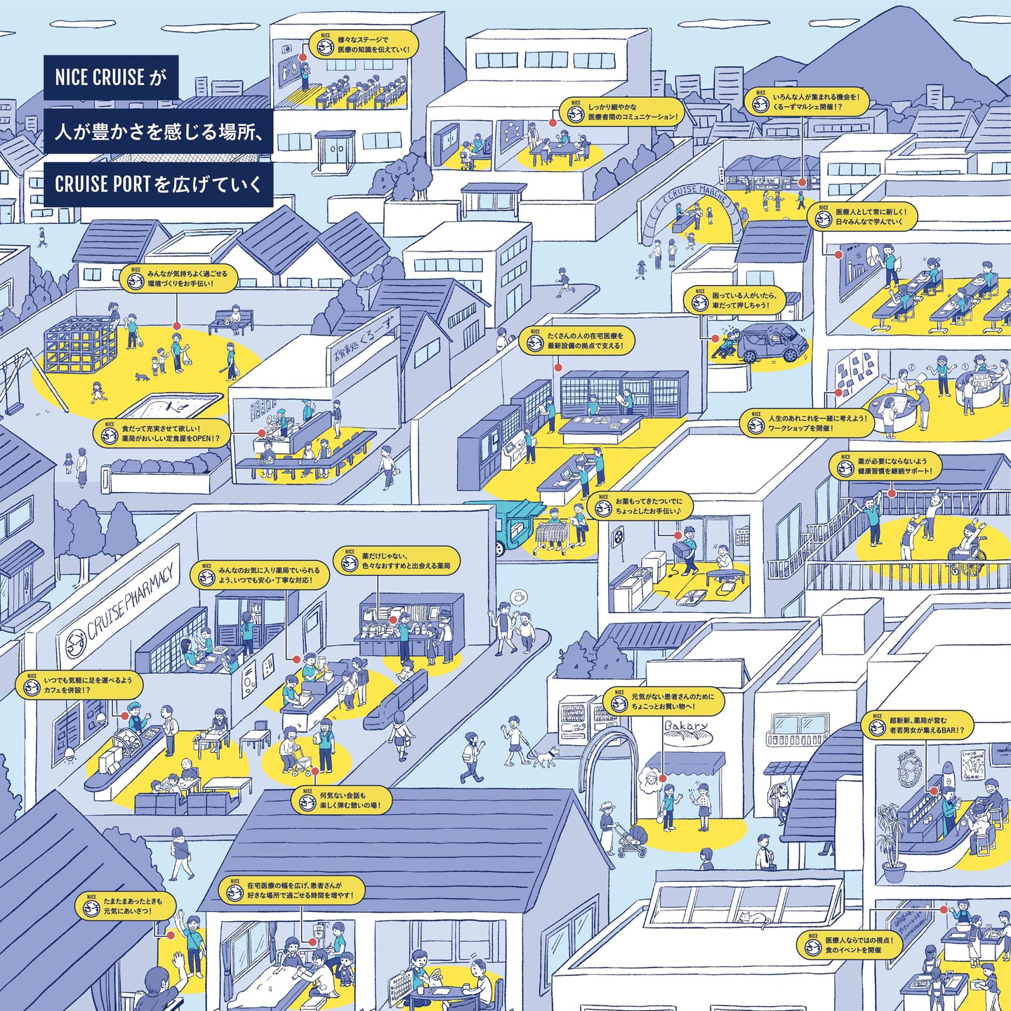 「CRUISE」し続ければ、ボクらの医療はその枠を超え、生活の領域へ繋がり、「CRUISE PORT」は広がっていきます。