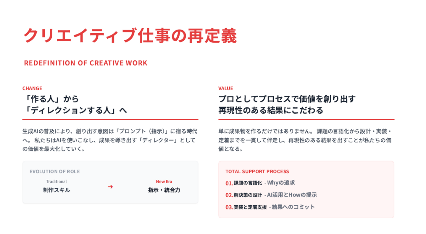 守ってきたもの、積み重ねてきたものを大切にしながらも、仕事の進め方、人との向き合い方、そして自分自身の在り方をアップデートしていく。