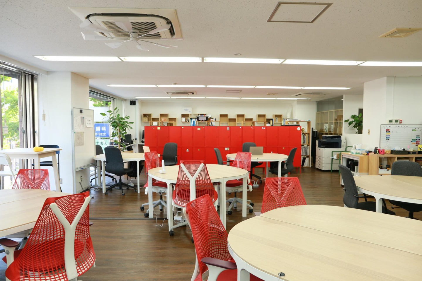 社内はフリーアドレスで、その日の気分によって自由に座る場所を選べます。私物は自分のロッカーに保管可能です。コワーキングスペースを兼ねているエリアには、他の入居者が作業をしていることもあります。