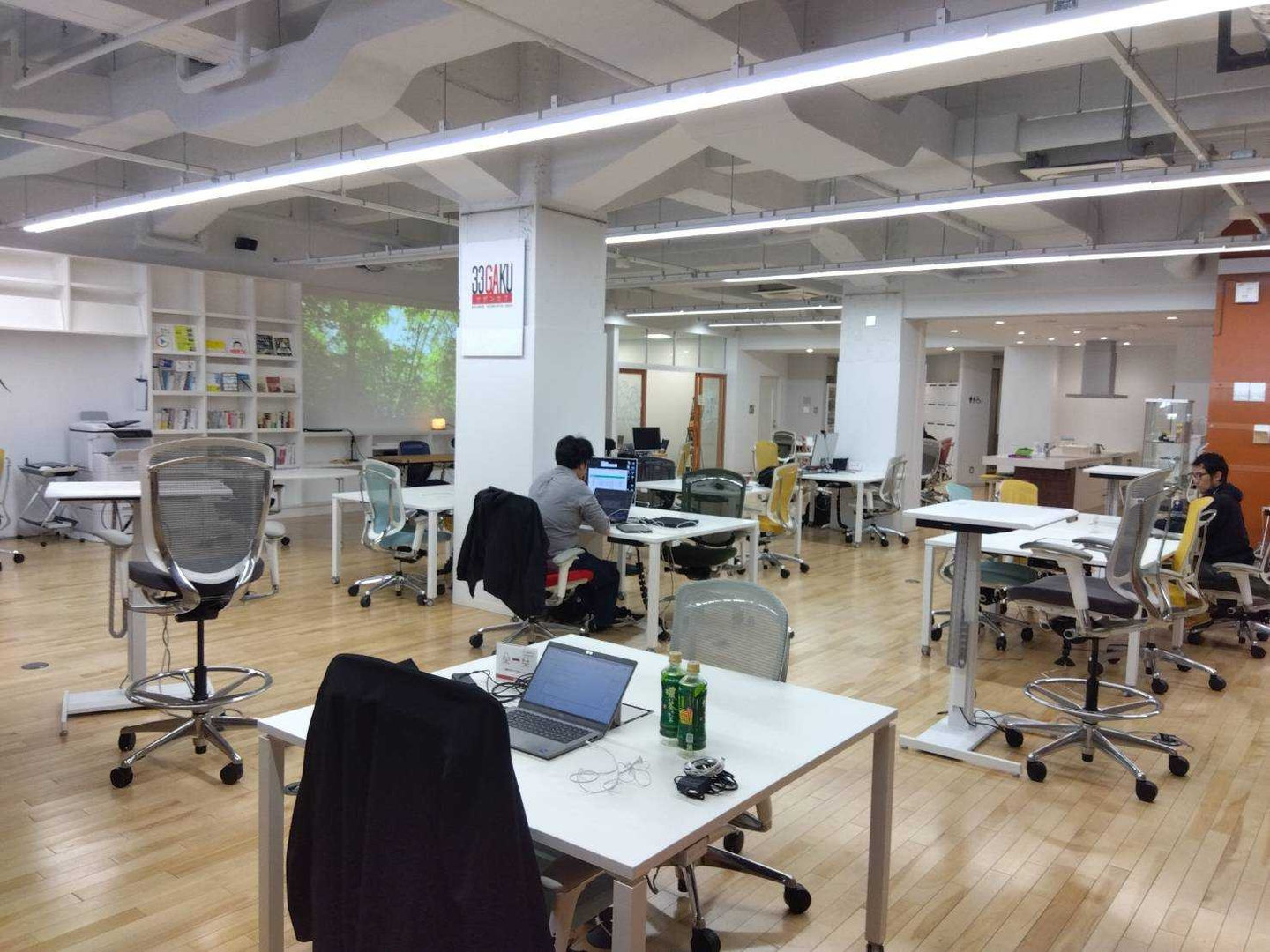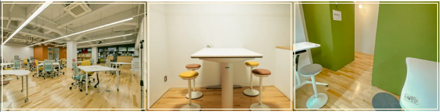 高さを調整できるデスクや椅子など、自分の使いやすいように環境や場所を整えられる点がポイント。IT業界を中心に、いろいろな分野で働く人が集まっています。