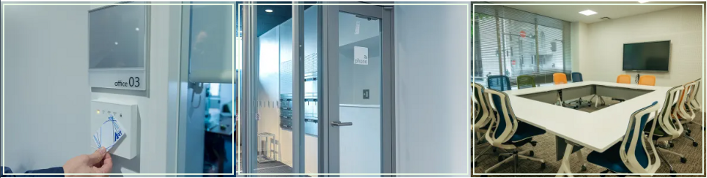 各部屋はカードキーによる出入管理でセキュリティーを確保。会議室も用意しています。