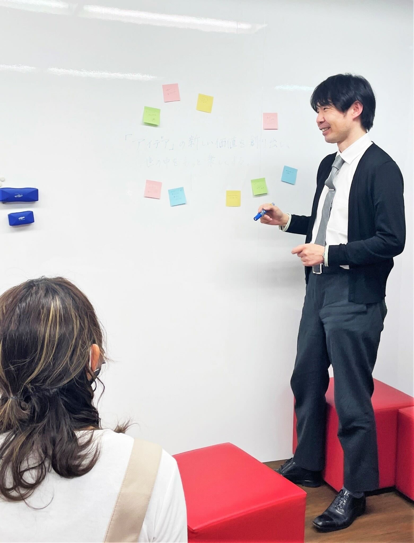 創業者でもある社長の齋藤から、会社の歴史やアイデアプラスの理念・ビジョン、社員としての心得についてお話しします。いきなりで緊張するかもしれませんが、あまり構えずに「へー、今までそんなこともあったんだ~」と、楽しんで聞いていただければ大丈夫です。笑
