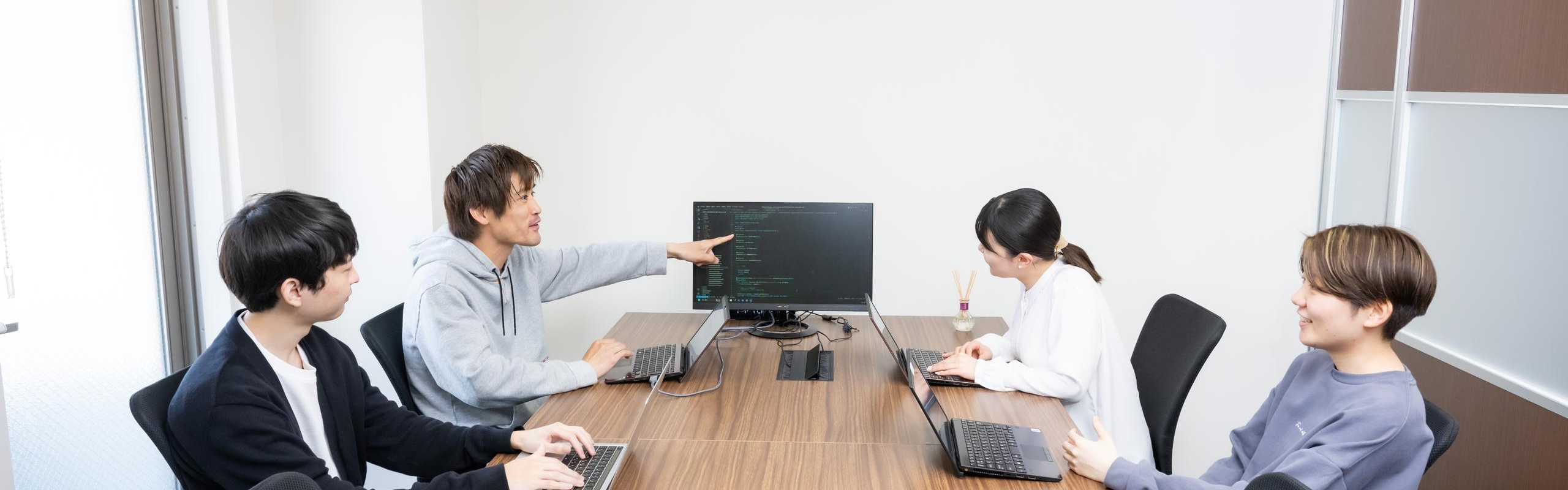 全員20代異業界出身から入社。1年目から実際の現場で質の高い業務を経験し、2〜3年目には上流工程にも挑戦できる機会を得られる場所は多くないと思っています。本人の希望があれば代表陣による勉強会も実施し、皆めきめき力を伸ばしています。