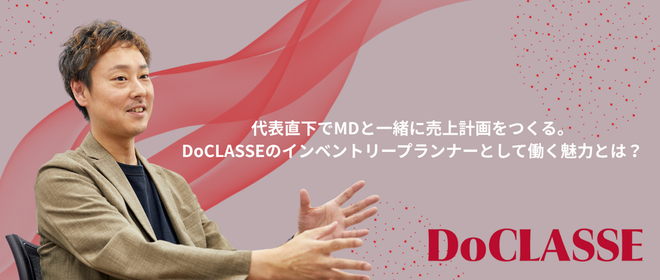 「いつまでも”好き”を楽しんでもらいたい」「自分らしく輝いて欲しい」 そんな想いを胸に、洋服・服飾雑貨・ジュエリーなどを手掛ける株式会社DoCLASSE。 お客様に届ける価値のすべてにこだわりを持っていることから、一貫して自社で企画・製造・販売までを担うSPA企業となっています。 自社ブランドを複数展開しており、カタログ通販・Web・店舗と販売チャネルを拡大中です。 年齢は関係なく、時を重ねるのが愛おしく感じるようなワクワクを、ファッションを通じて届けることが私たちの使命です。