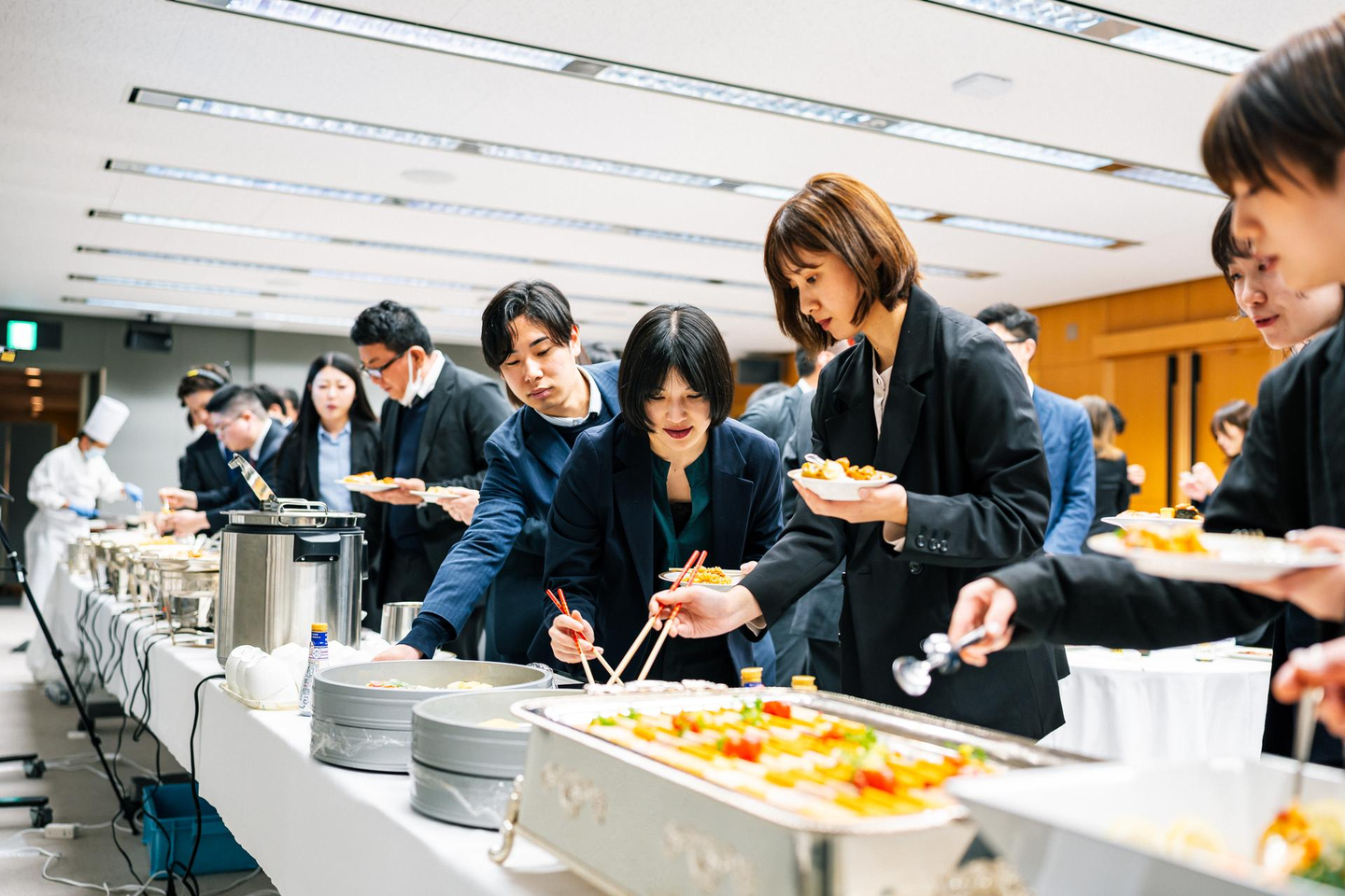 副社長の乾杯の挨拶を合図に帝国ホテルのビュッフェやお酒を楽しみ、会場の雰囲気も一気にリラックスムードに変わりました。