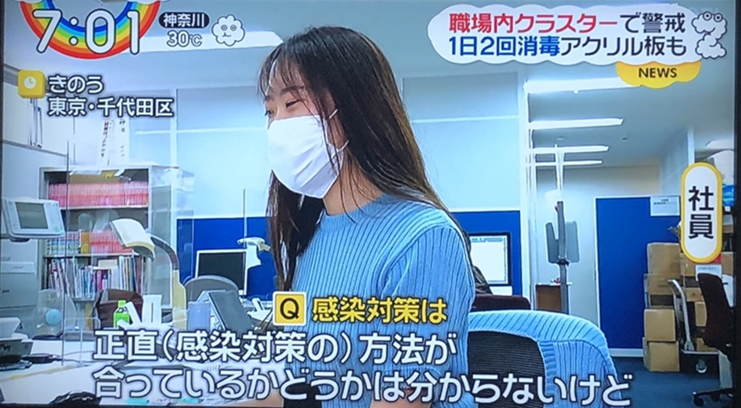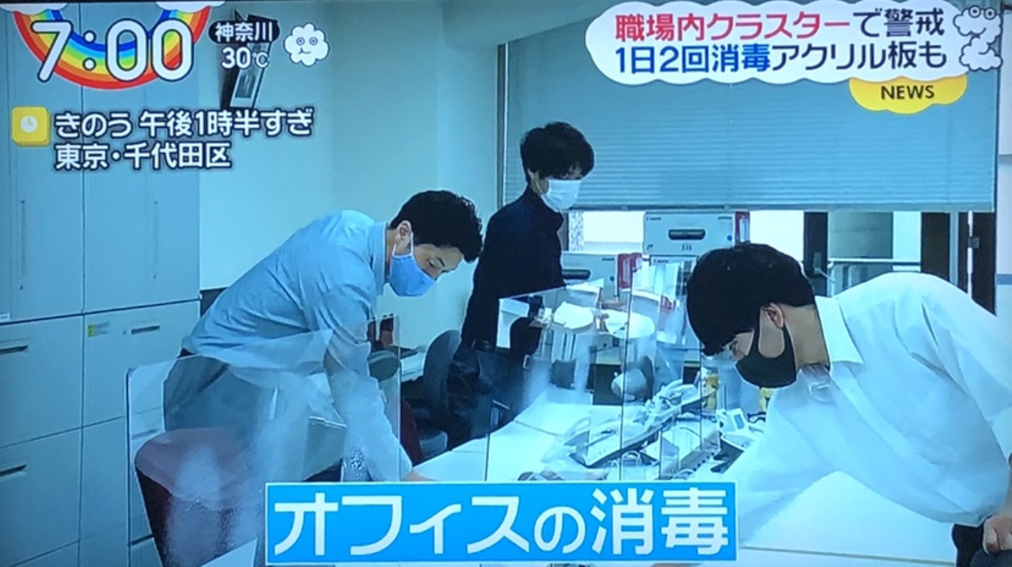 職場でどのようにして感染予防をするかということをとりあげたニュース内での紹介でした。