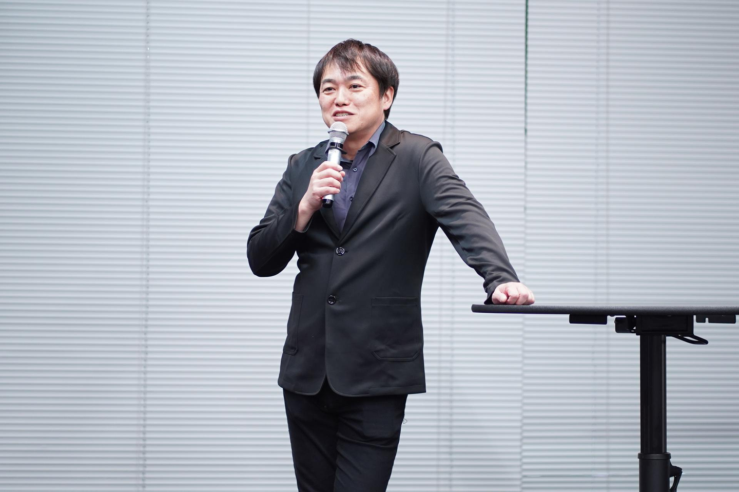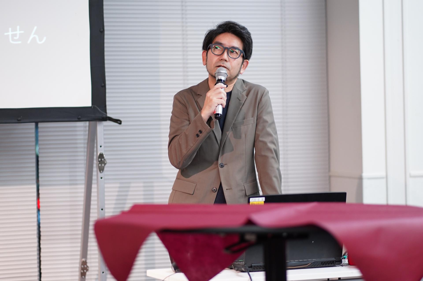 開会に伴い弊社代表の遠藤からのご挨拶!30年にわたるアクワイアの歴史を振り返り、代表自らゲームのカットシーン内の絵コンテをきっていた資料なども出てきました。