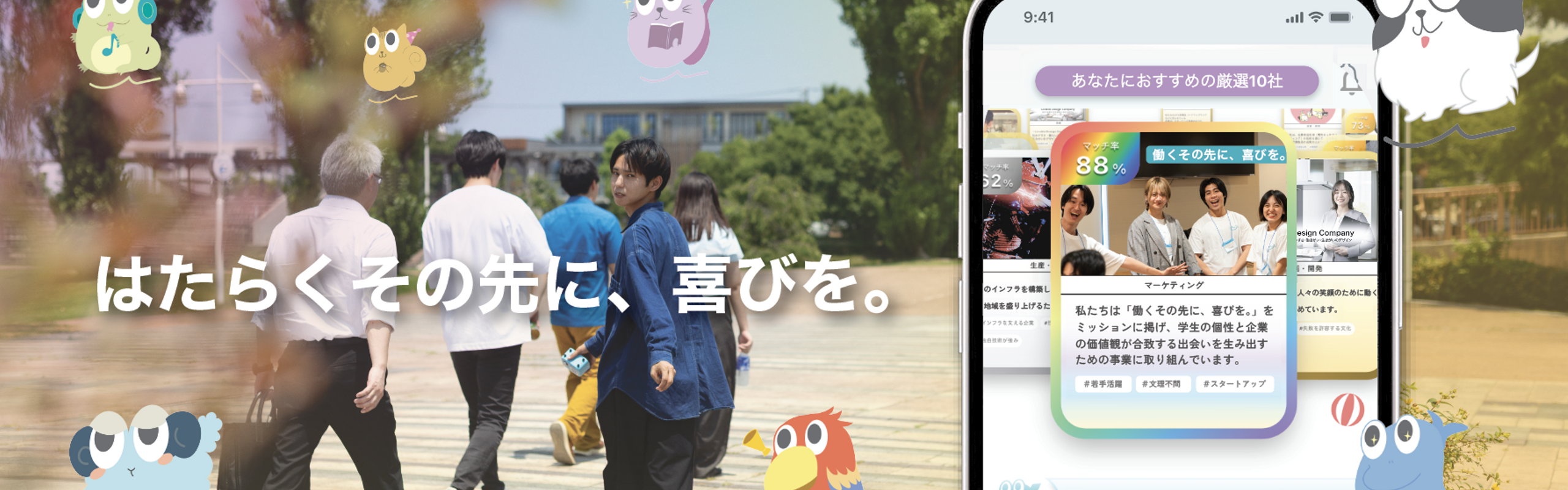 私たちは、地方から全国の就職活動に変革を起こすHR Techスタートアップです。 「知名度」や「条件」といった表面的な情報で選ばれることが主流な今の就活市場では、企業と個人の本質的なマッチング機会が不十分です。特に地方での人材不足は深刻で、一部の大手や都市部への人材一極集中や入社後のミスマッチ増加など、業界構造自体に限界がきています。 就活・採用のマッチング型アプリ「AI Talentee(タレンティー)」を提供することで、企業カルチャーと個人の価値観・理念が深くフィットする出会いを生み出しています。