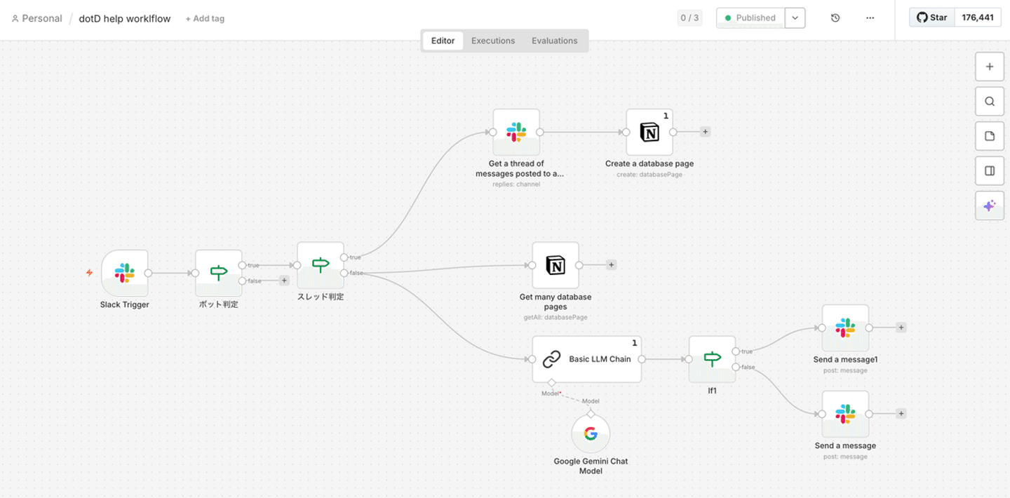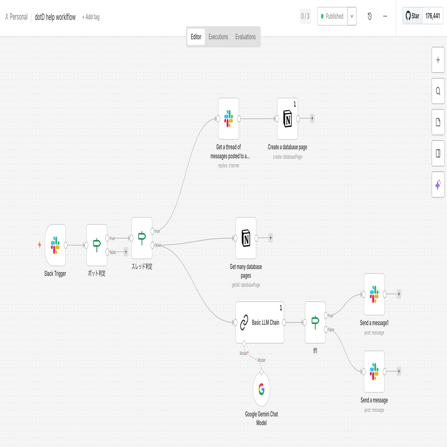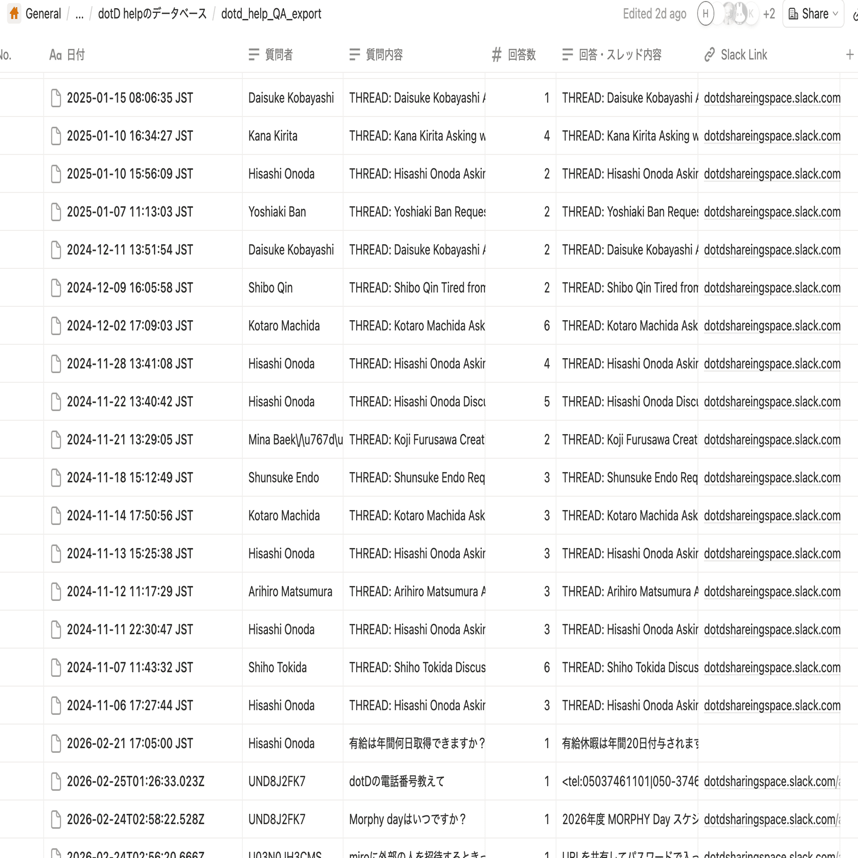 - 学習のループ:人間が回答した内容をAIが監視。そのスレッドを自動的にNotionへ格納し、次回の質問に備える