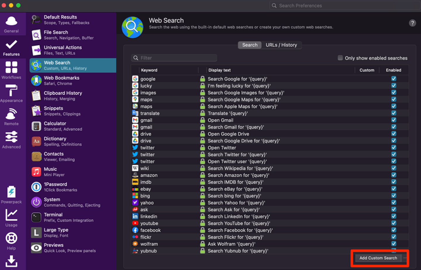 設定方法は、Web Searchの「Add Custom Search」を押して、