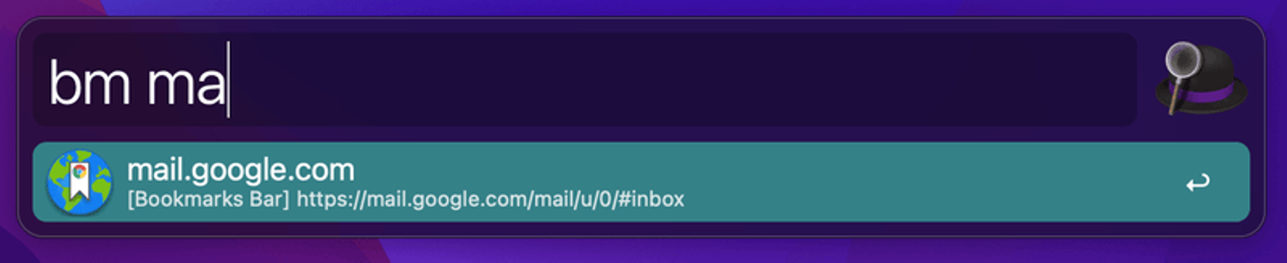 以下のように、自分が設定したキーワードの後に文字を入力することでブックマーク検索ができます。