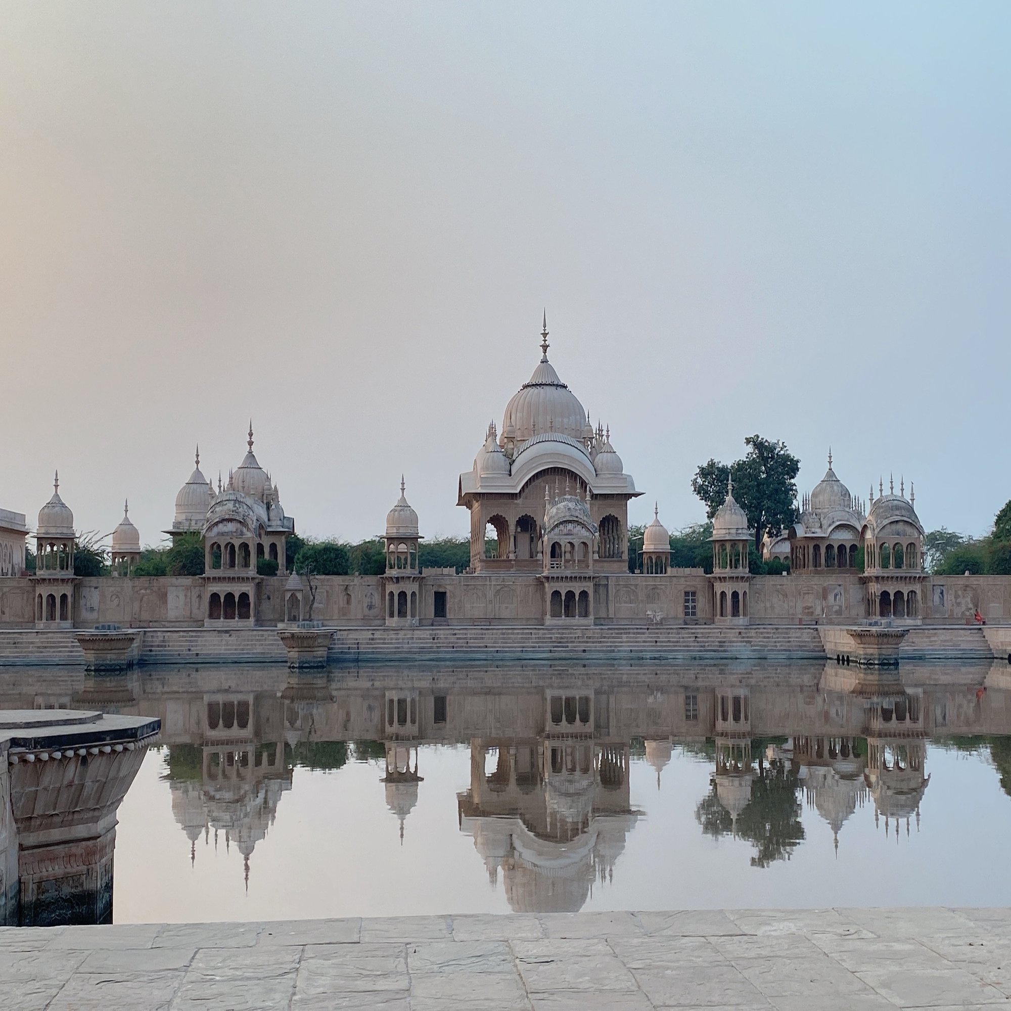 機会があれば、ヴリンダーヴァンにある様々な聖地を師匠とともに巡礼します。あたりには多くの巡礼者が集まり、熱心にマントラを唱えたり、地面に腹ばいになったりして(ダンダヴァットといいます)祈りを捧げている姿が見られました。とても神聖な場所で、心が洗われるようでした。