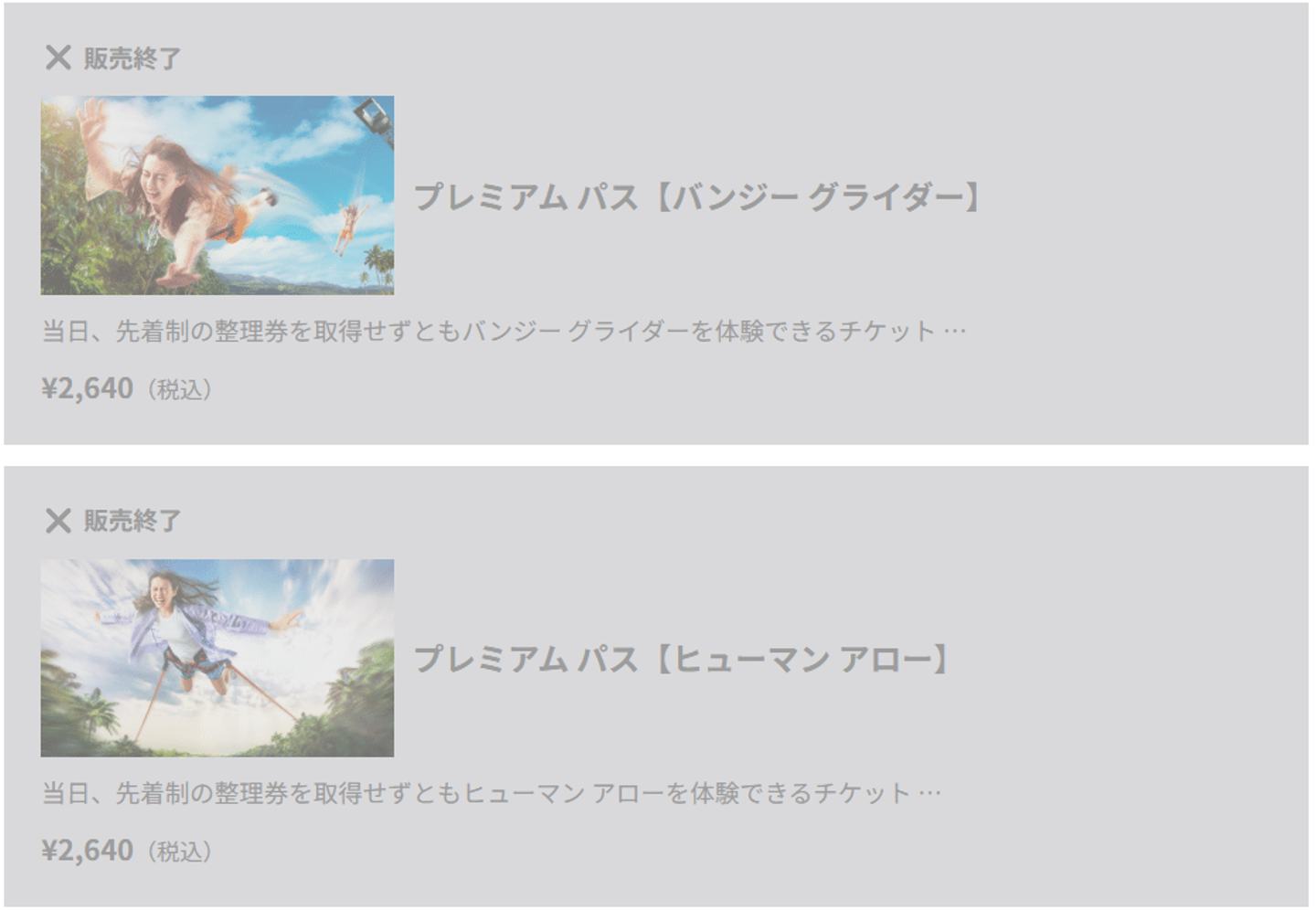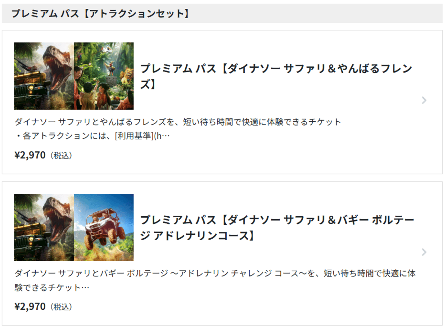 次に浮上したのが後日発売予定の「駐車場」と「プレミアムパス(ファストパスのことですね)」。