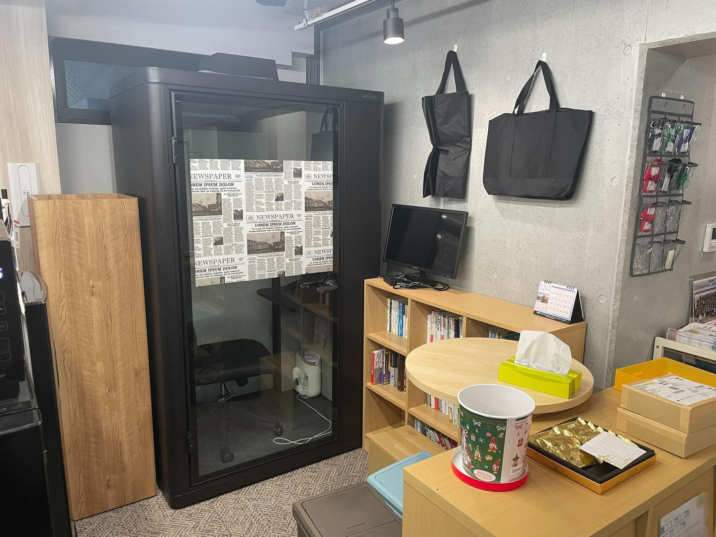 個室型なので、周りの音声を気にすることなく打ち合わせに集中することができます。