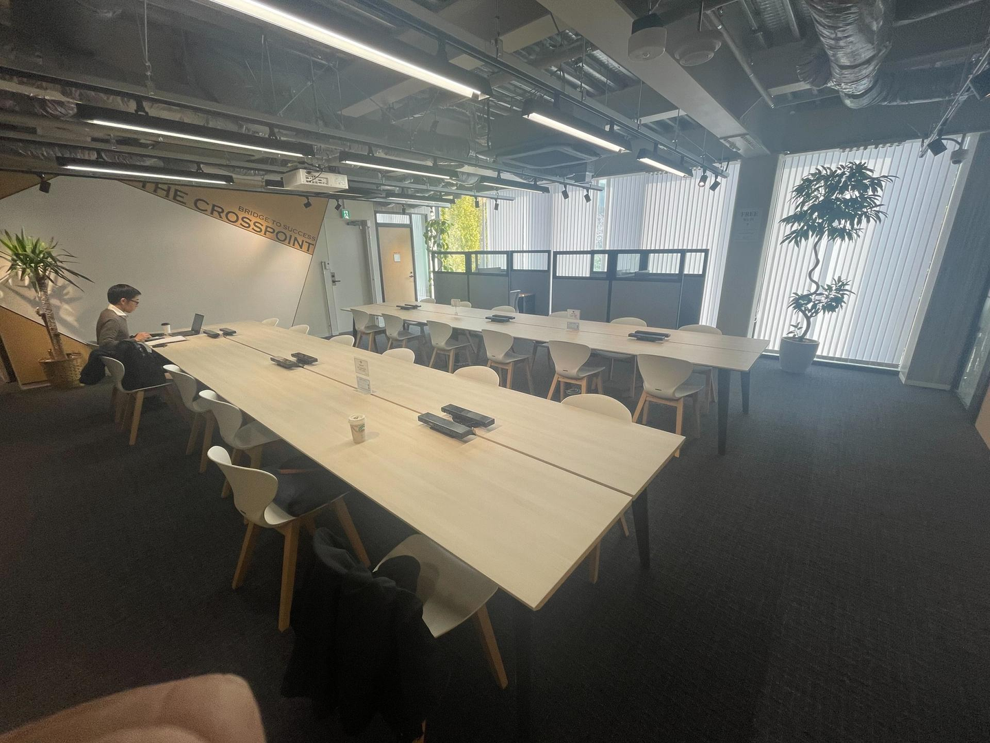 Cross Pointには、それぞれにレンタル会議室があり、Zoomルームは1時間まで無料で利用可能なのだとか。