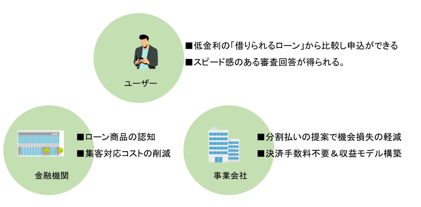 まずエンドユーザーのメリットから説明すると、より安い金利でローンを利用できるようになります。たとえば、個人向け生活資金のローンでは4〜5%は金利が低くなりますし、マイカーローンなら金利を8分の1程度に抑えられるんです。