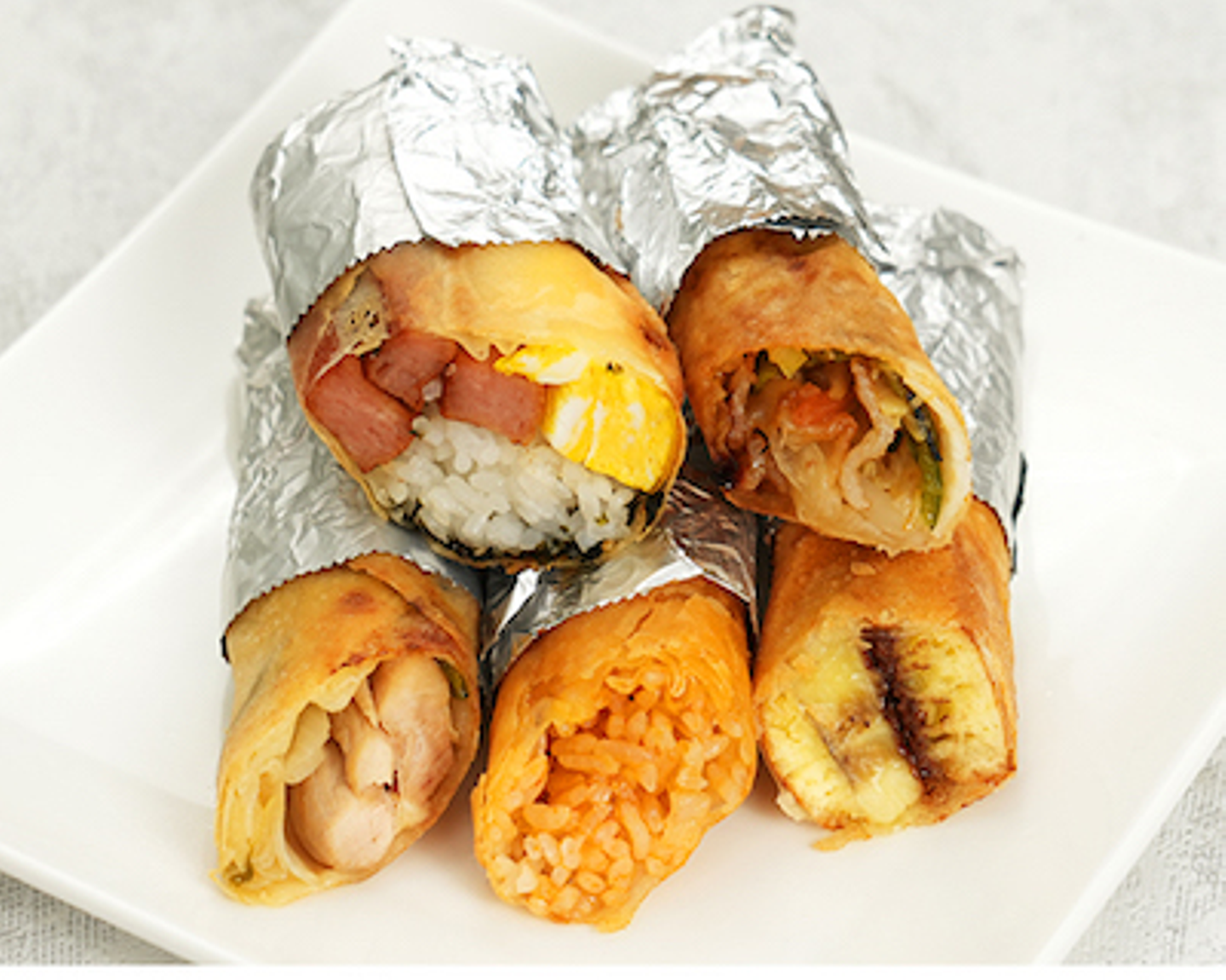 5種類のご飯やホットケーキを巻いて揚げた斬新な春巻き。