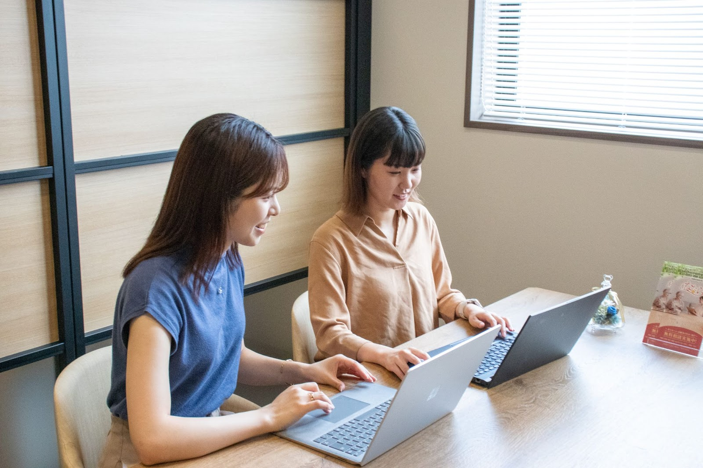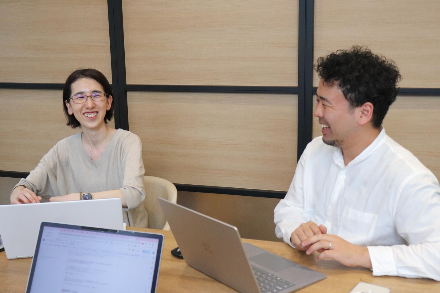 「私は未経験で入社したので、すぐ相談できる相手がいるのって、やっぱり安心感があります。言葉にしづらいニュアンスも、顔を見て話すと伝わりやすいんですよね!」