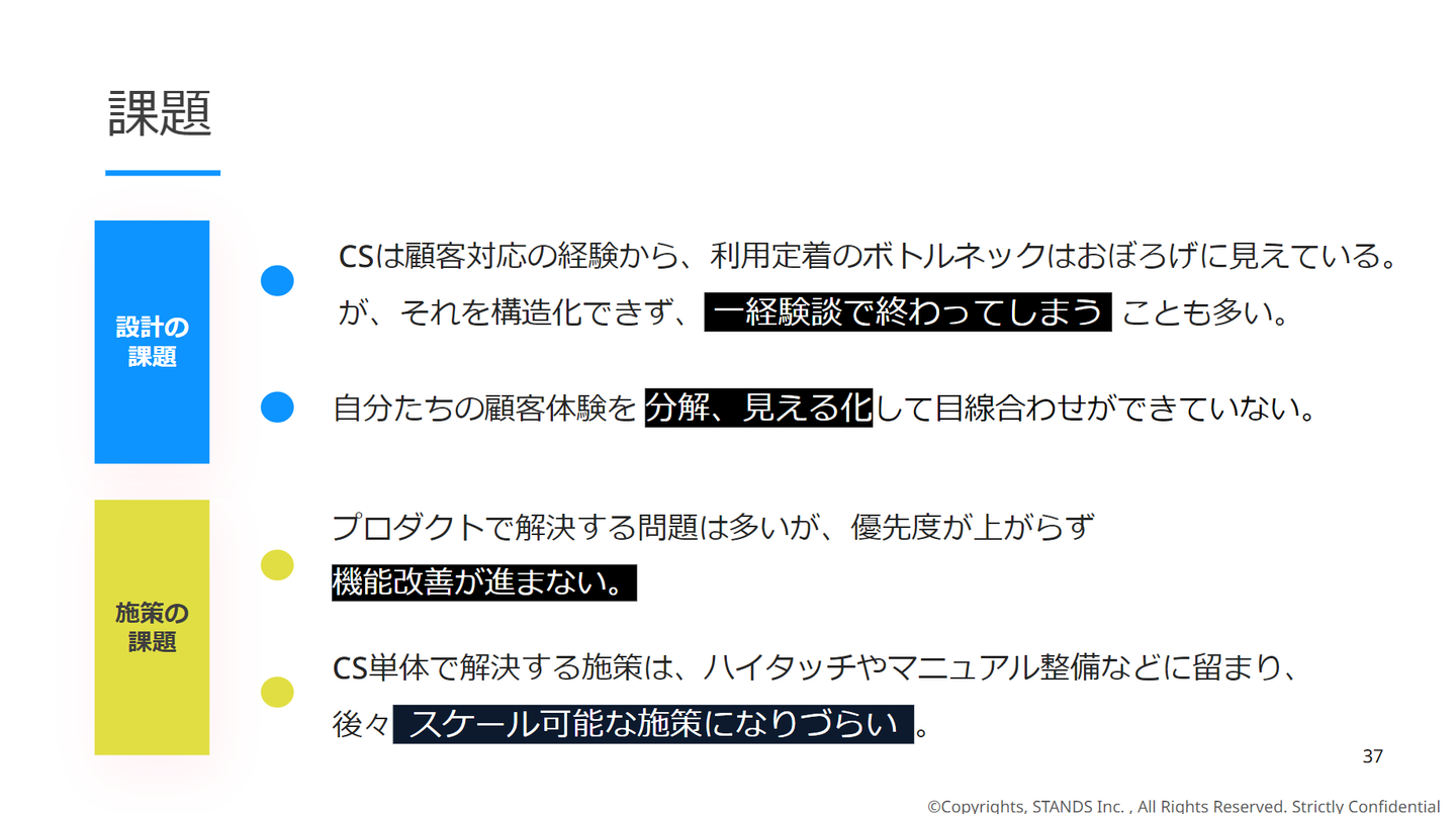 STANDSからは、よくある課題を「設計の課題」「施策の課題」に分けてお伝えし、解決策について解説していきました。