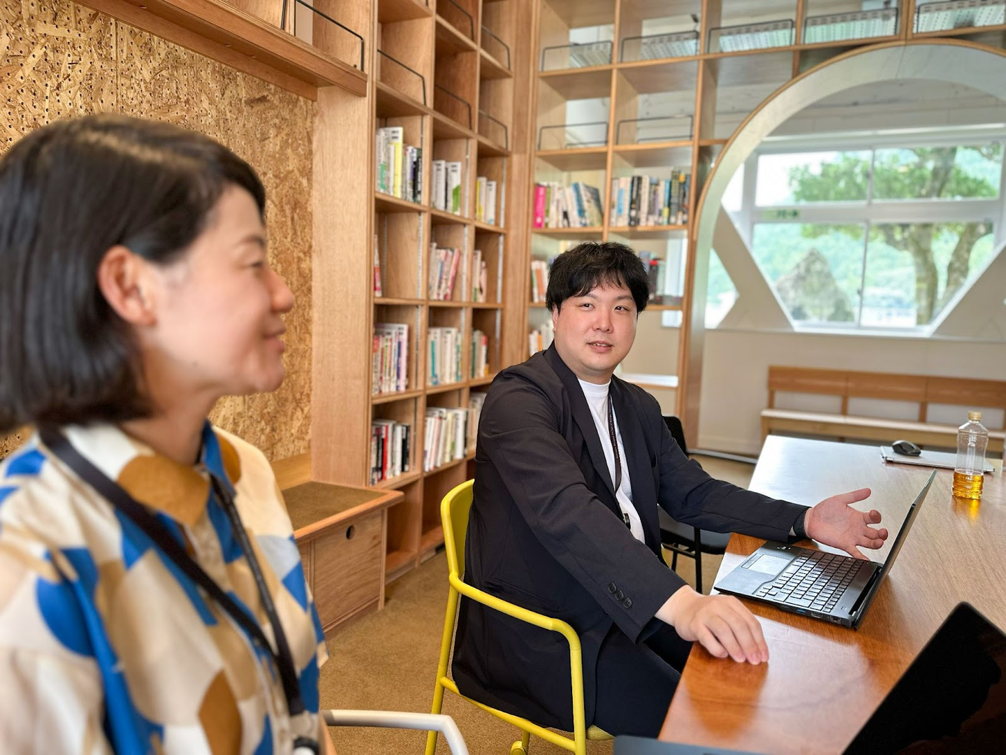 藤川:今は教務スタッフとして、成績管理や各種システム管理など学校事務のバックヤードを担っています。また、入職後に司書資格を取って、図書館の司書も担当しており、学生も町民も使える図書館の企画・運営をしています。他にも学生の課外活動の顧問やオンラインイベントの配信なども担当しています。