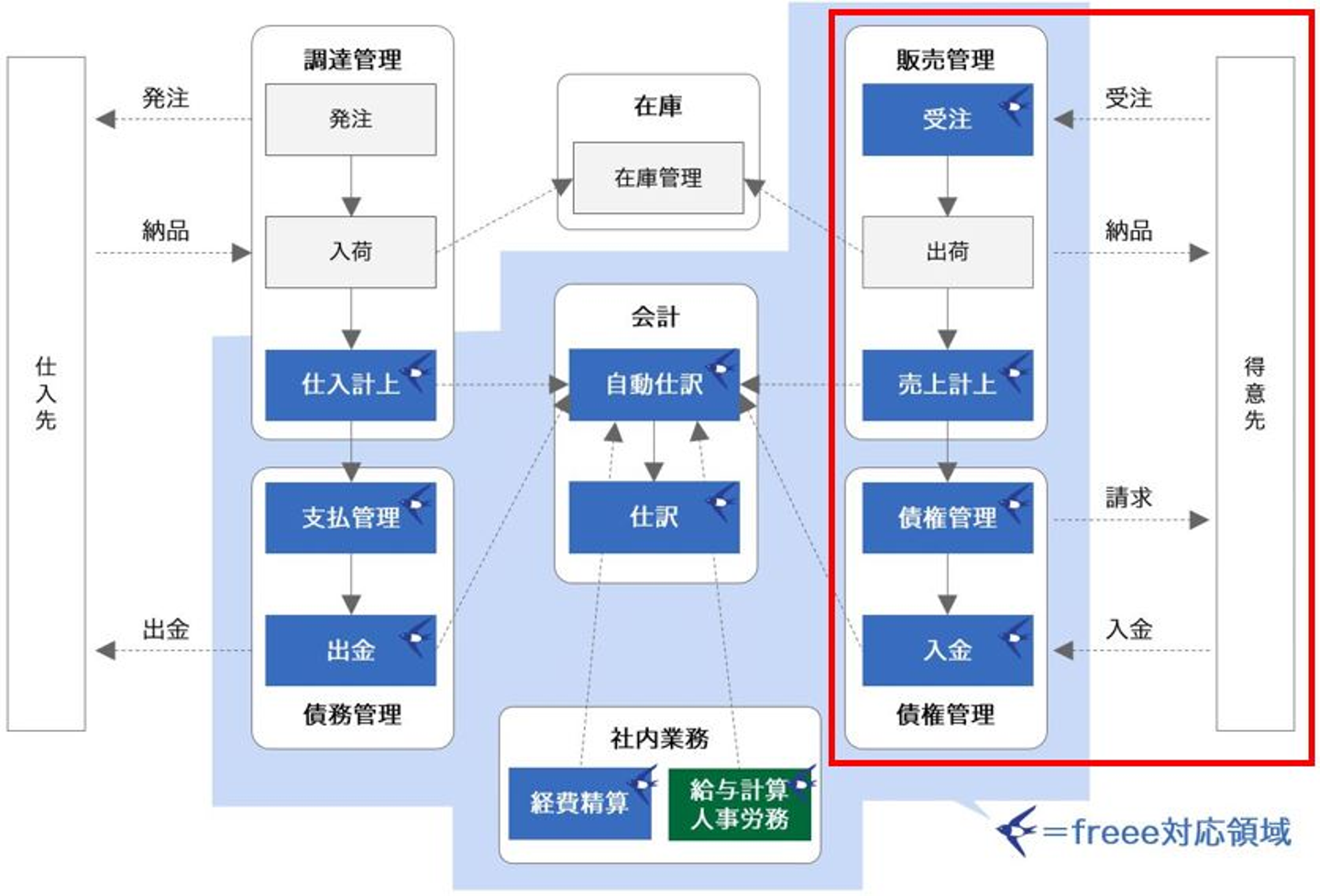 1.販売プロセス・・・請求書の発行、入金確認、債権座高管理