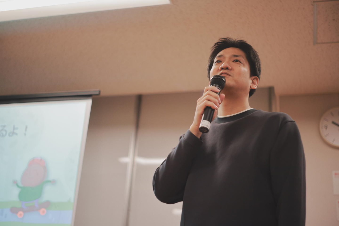 広報部長・山田の企画にて、「こんなのあったらいいな!」をテーマに、抽象的な言葉から自由に連想を広げていくワークです。《四角い頭を丸くしよう!》というメッセージのもと、発想力を刺激する楽しい時間となりました。