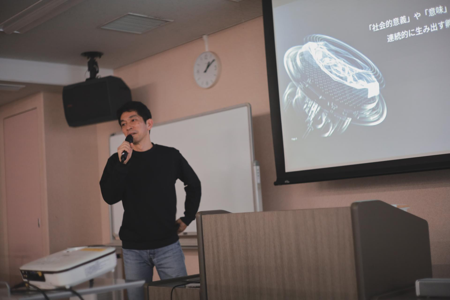 午後ラストは、会長 落合陽一から業務から一歩離れた、非日常的でスケールの大きなテーマが語られました。普段なかなか意識することが難しい未来志向の話で、参加者全員が新たな視点と刺激を得る時間となりました。