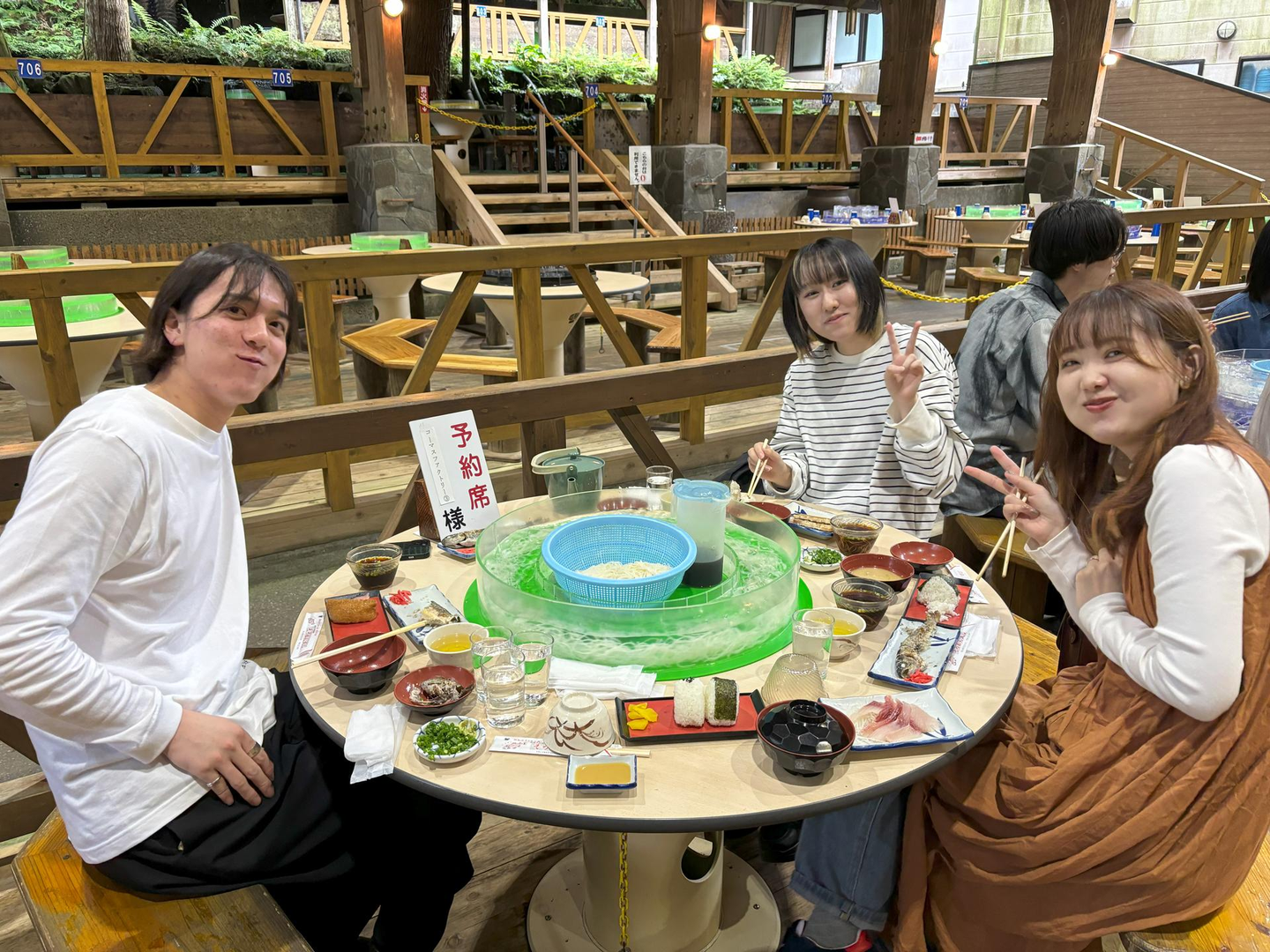 龍宮神社、池田湖と観光した後は、お待ちかねの昼食TIME🥢回転式そうめん流し発祥の地である唐船峡でお昼を食べました!流しそうめんというと、高いところから滑り台のようになっているものを想像しますが、鹿児島では回転式が一般的なようです😳みんなでテーブルを囲んで楽しめるというのが新鮮でした!