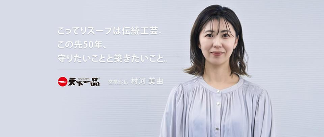 個照りで、天下一品な幸せを作る お客様一人一人に喜んでいただきたいという想いはもちろん。 従業員一人一人も自分らしく楽しみながら働いてほしい。 それが、天下一品の文化であり、経営理念です。 こってりラーメンでお客様を幸せにするという意味に加えて、 働く社員一人ひとりの強み、個性を活かし、個人が輝ける会社を目指しています。 そして、その先に描くのは「ラーメン専門店 店舗数世界No.1」