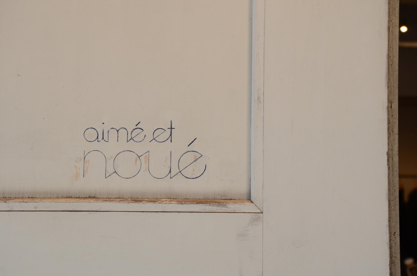 ショップの名前の由来はフランス語で「noué=結ばれる」「aimé=愛」。