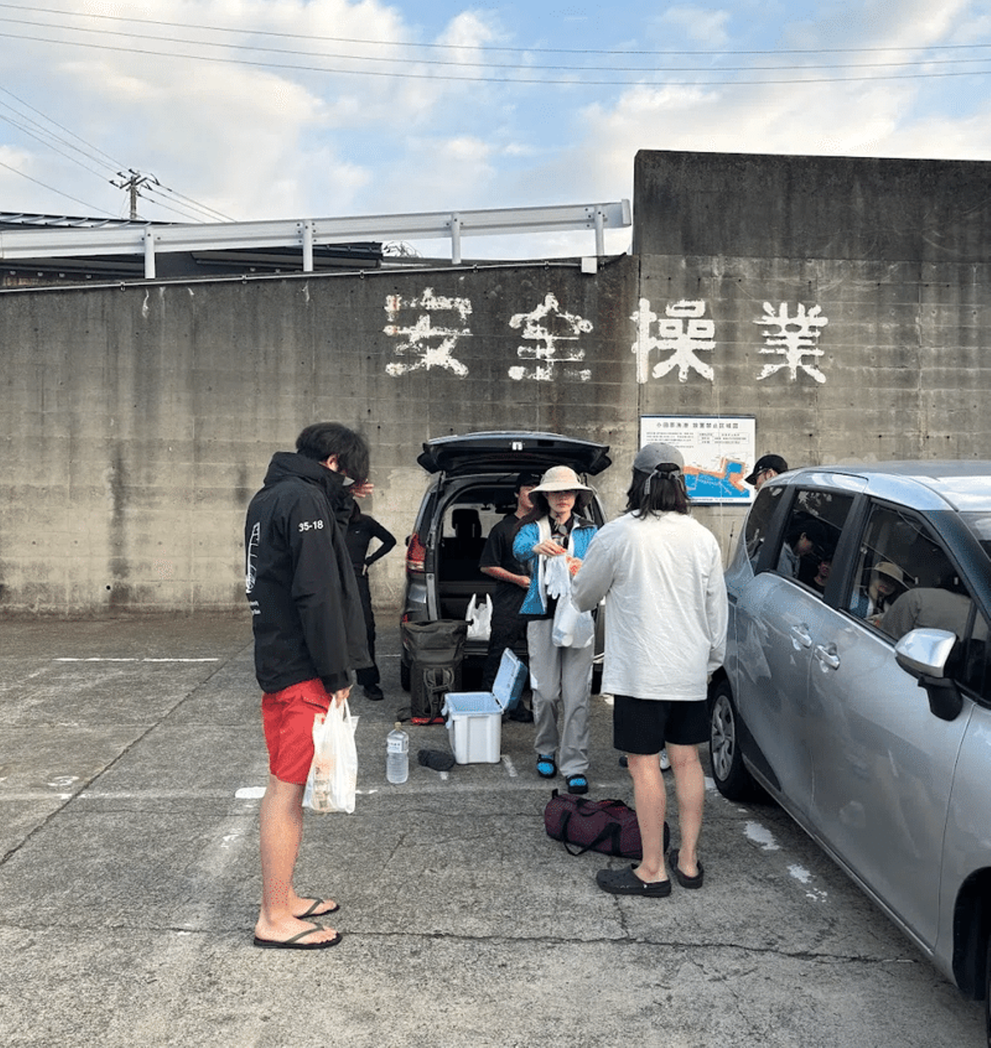 港に戻ってきたらすぐに着替えて、宿に帰るメンバーと買い出しメンバーに分かれて行動開始🚗