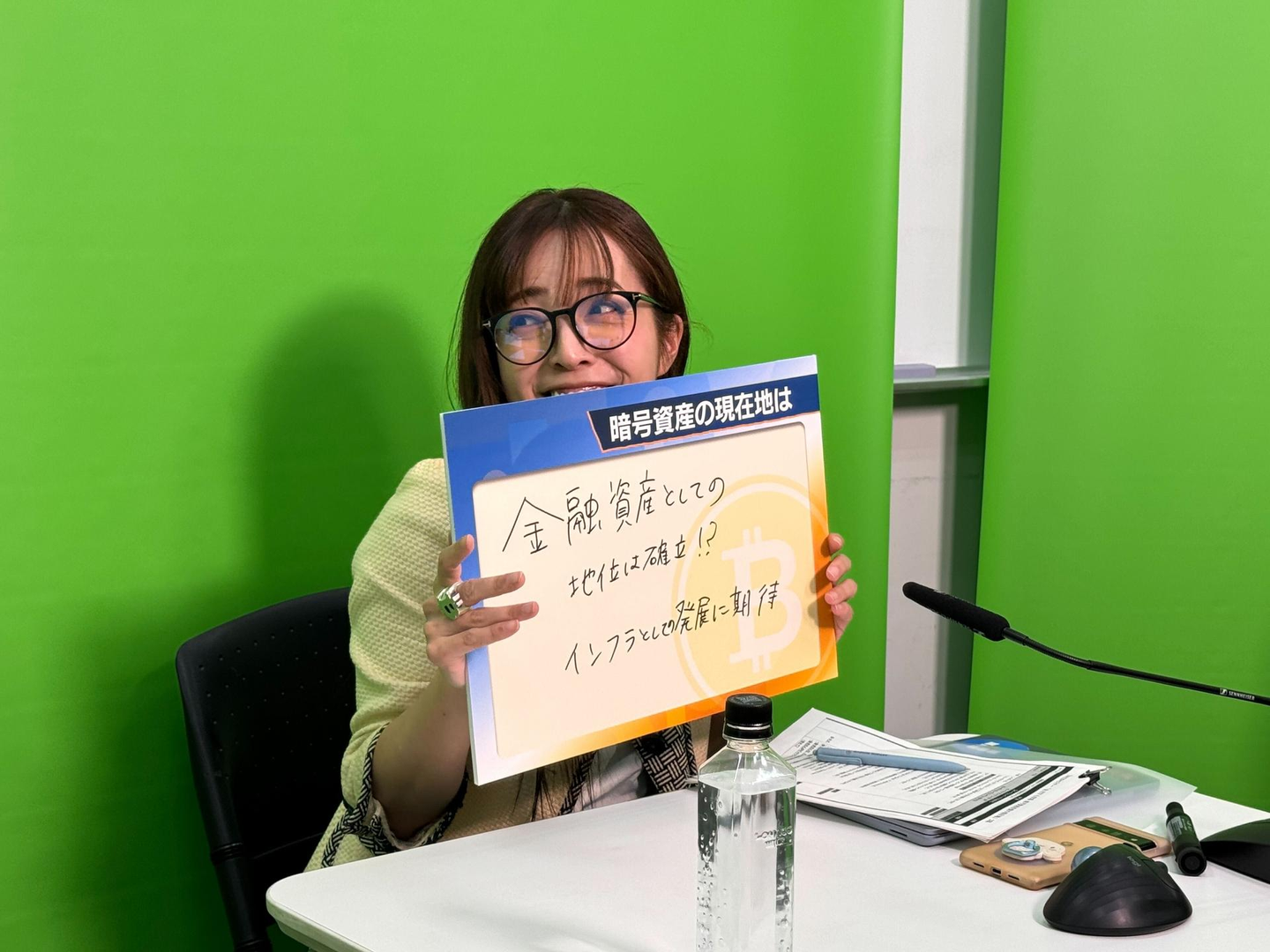 本番の直前に、番組スタッフの方から「最後に『暗号資産の現在地は』というフリップを出すので一言書いてください」とリクエストがありました。迷わずペンを走らせて書き込んだ内容は、記事の後半でご紹介しますのでお楽しみに。