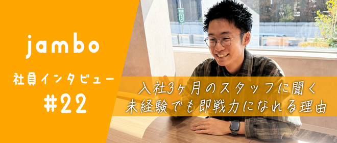 ジャンボでは、 ● ユーザーの方々に楽しんでもらうこと ● 同じチームのメンバーが仕事を通してより良い生活を送れるよう、サービスの利益を最大化すること を目指しています! 失敗を恐れず、常に新しいことに挑戦し、学ぶ気持ちを忘れないことを心掛けています。 入社時はできることが少ないかもしれませんが、必ず”その人じゃなければ出来ないもの”が業務を通して見えてくるはずです。 各スタッフ、新しいことへ挑戦する大変さの中にも楽しい気持ちを持って日々仕事に励んでいます!