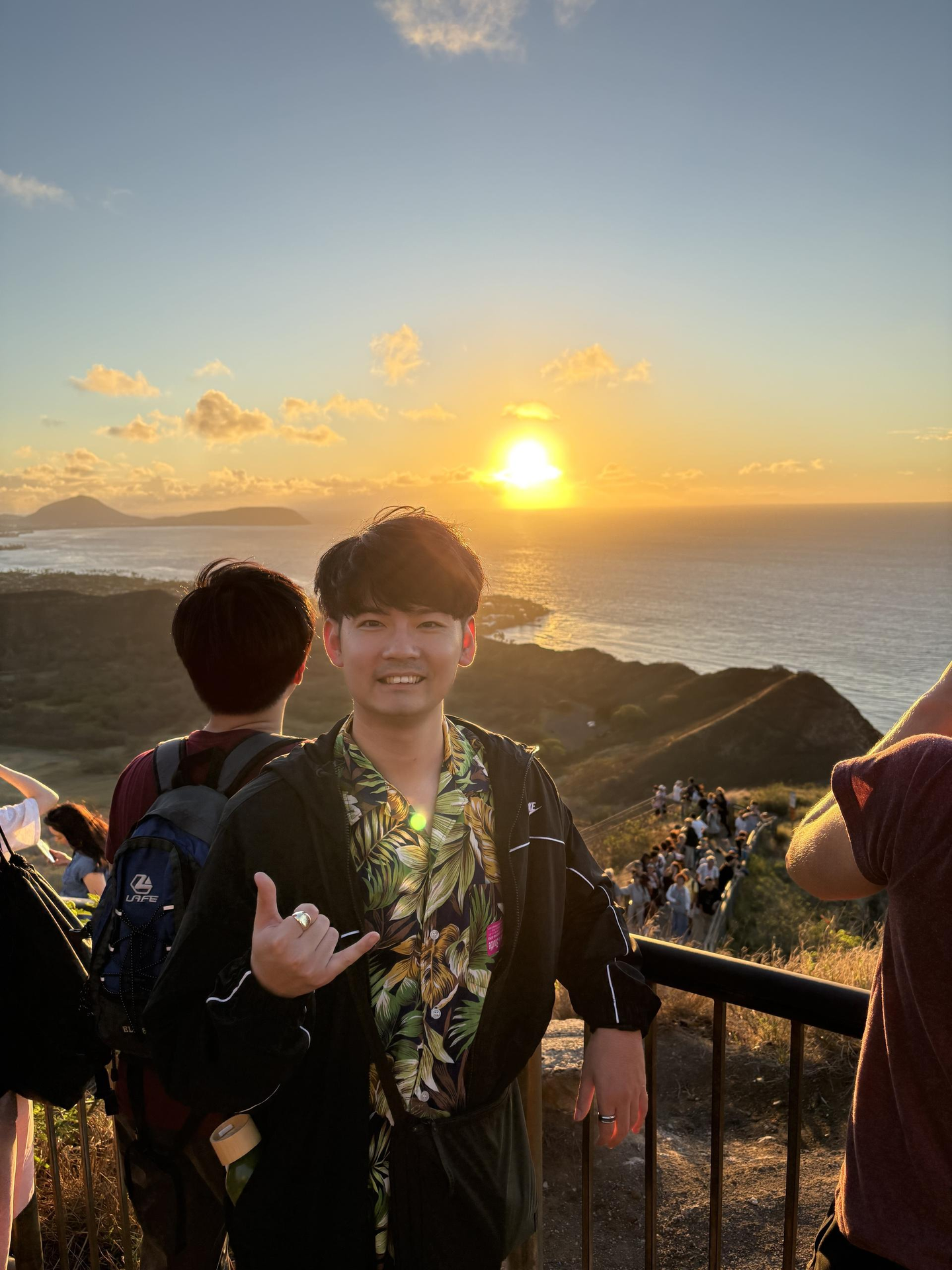 社員旅行で行ったハワイのダイヤモンドヘッドの頂上で微笑む石田さん🤙