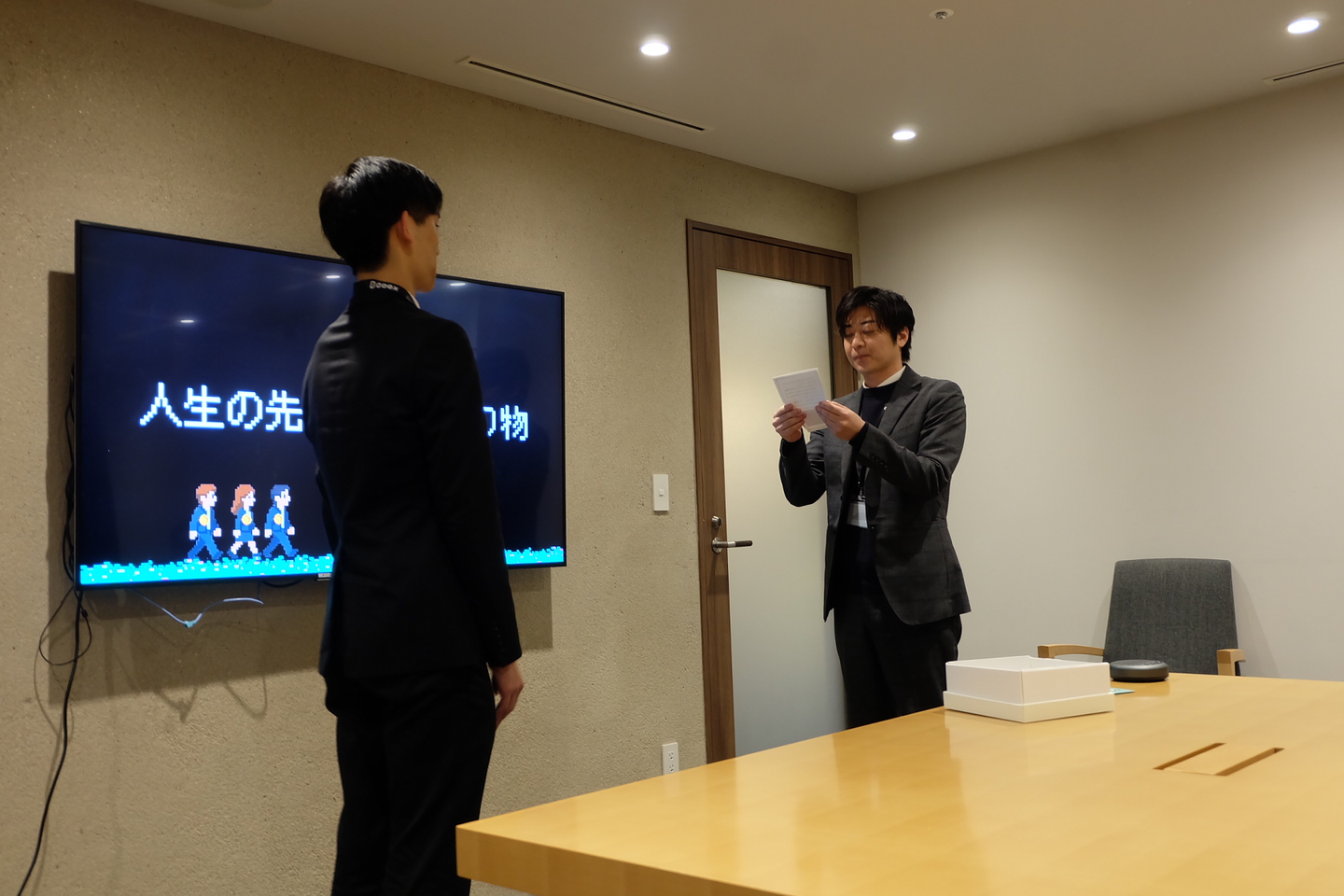 実はこの3名、内定者インターンに参加していた方もいれば、2025年の1月にDoooxと出会って「ここで働きたい!」と飛び込みで入社を決めてくれたメンバーもいるんです。そんな頼もしいルーキーたちを迎える今年の入社式は、彼らがこれから社会という大冒険に旅立つイメージで、「RPG」をコンセプトに開催しました!