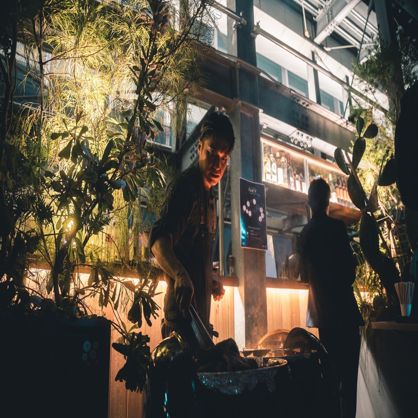 都会の夜景を眺めながら、焚き火とシーシャ。まさにBUTTER tokyoを体現。