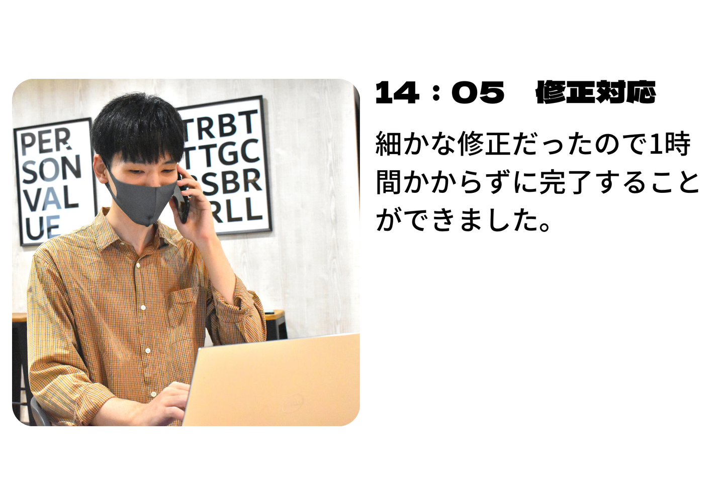 やはりクライアントワークということで、電話対応や商談の時間が多く見受けられました。技術だけではなく、営業力も大切だと言われていることが改めて理解できましたし、久保さんの人柄の良さと身長の高さを再確認できた1日となりました。